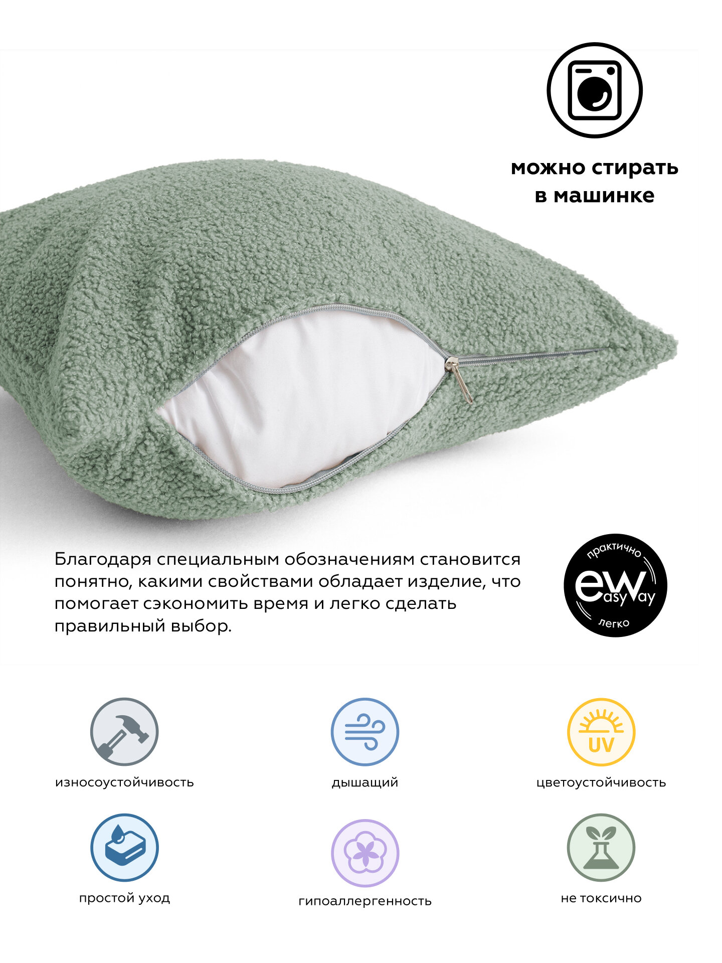 Подушка декоративная BRAVO WASABI мех барашек 45х45 см информация: