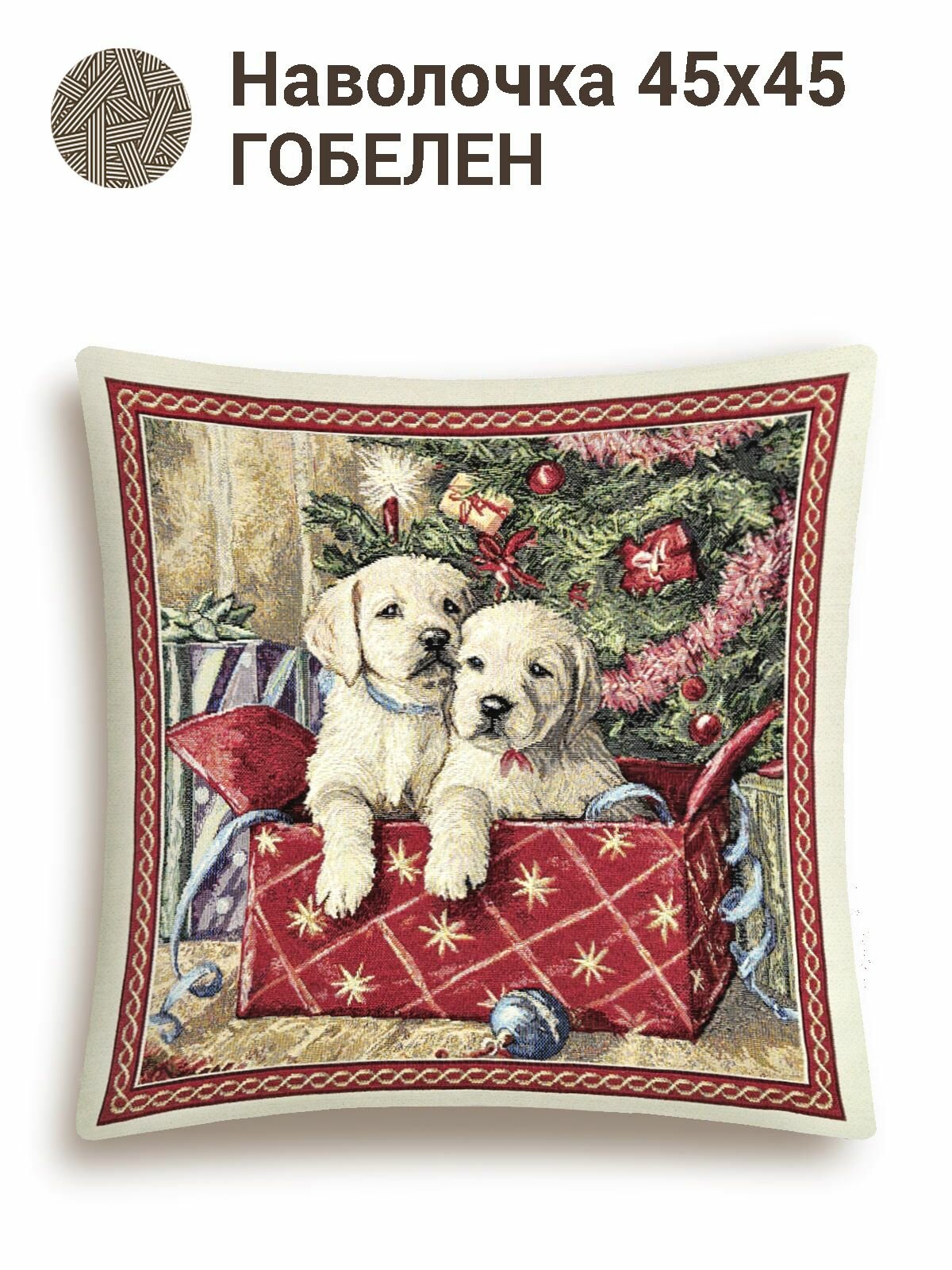 Наволочка новогодняя Le Gobelin Рождественский подарок Щенки 45х45 см информация: