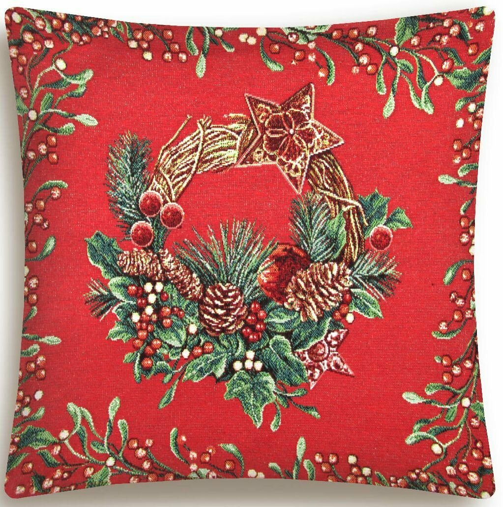 10 цен на Наволочка новогодняя Le Gobelin Рождественский венок Ягоды красный фон 45х45 см