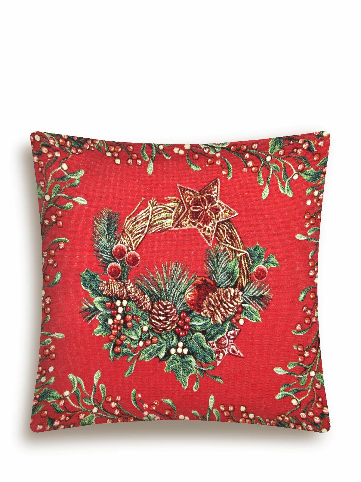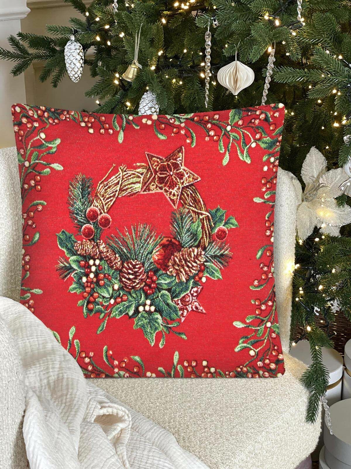 Отзывы на Наволочка новогодняя Le Gobelin Рождественский венок Ягоды красный фон 45х45 см