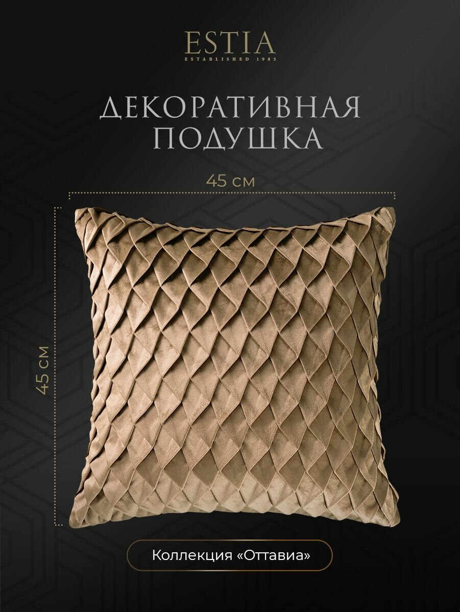 10 цен на ESTIA Подушка декоративная в подарок "Оттавиа" с плиссировкой, 45x45, коричневая