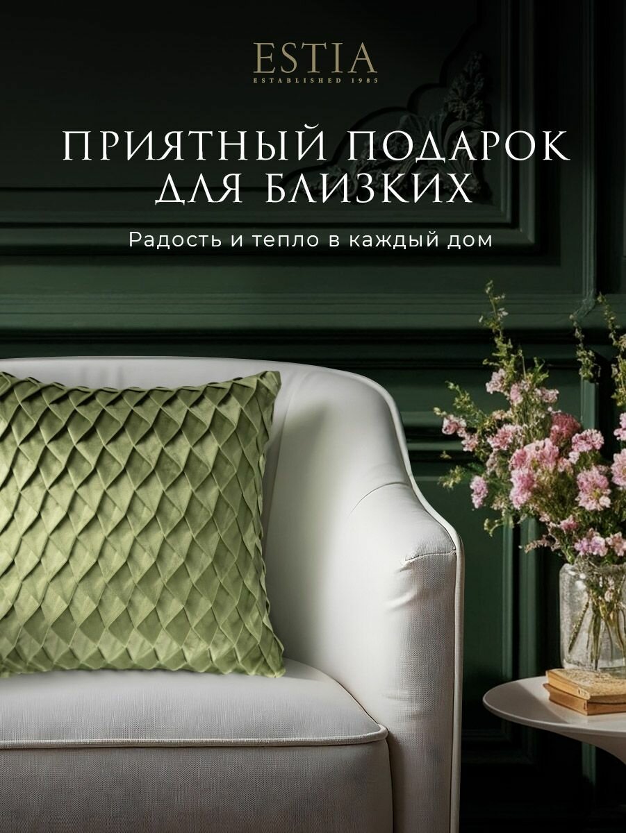 10 цен на ESTIA Подушка декоративная в подарок "Оттавиа" с плиссировкой, 45x45, зеленая
