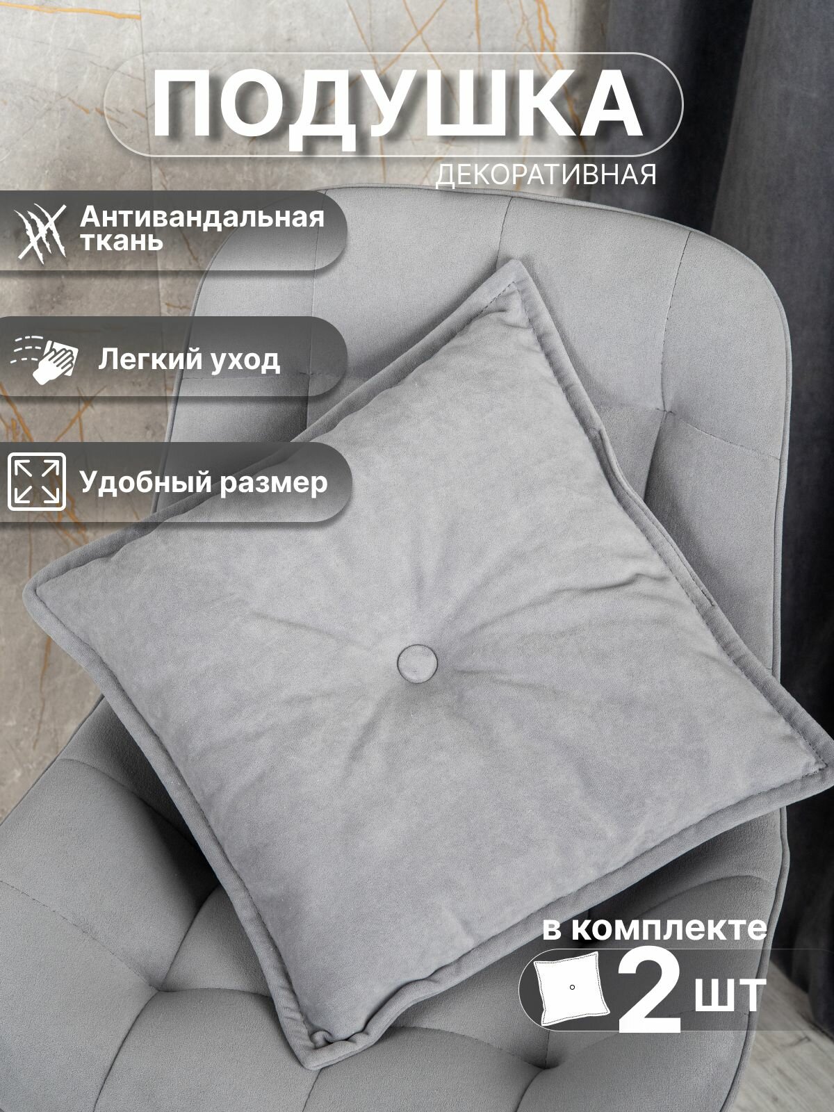 Подушка декоративная, "У Стулыча", 40 х 40 см, 2 штуки, серый велюр информация: