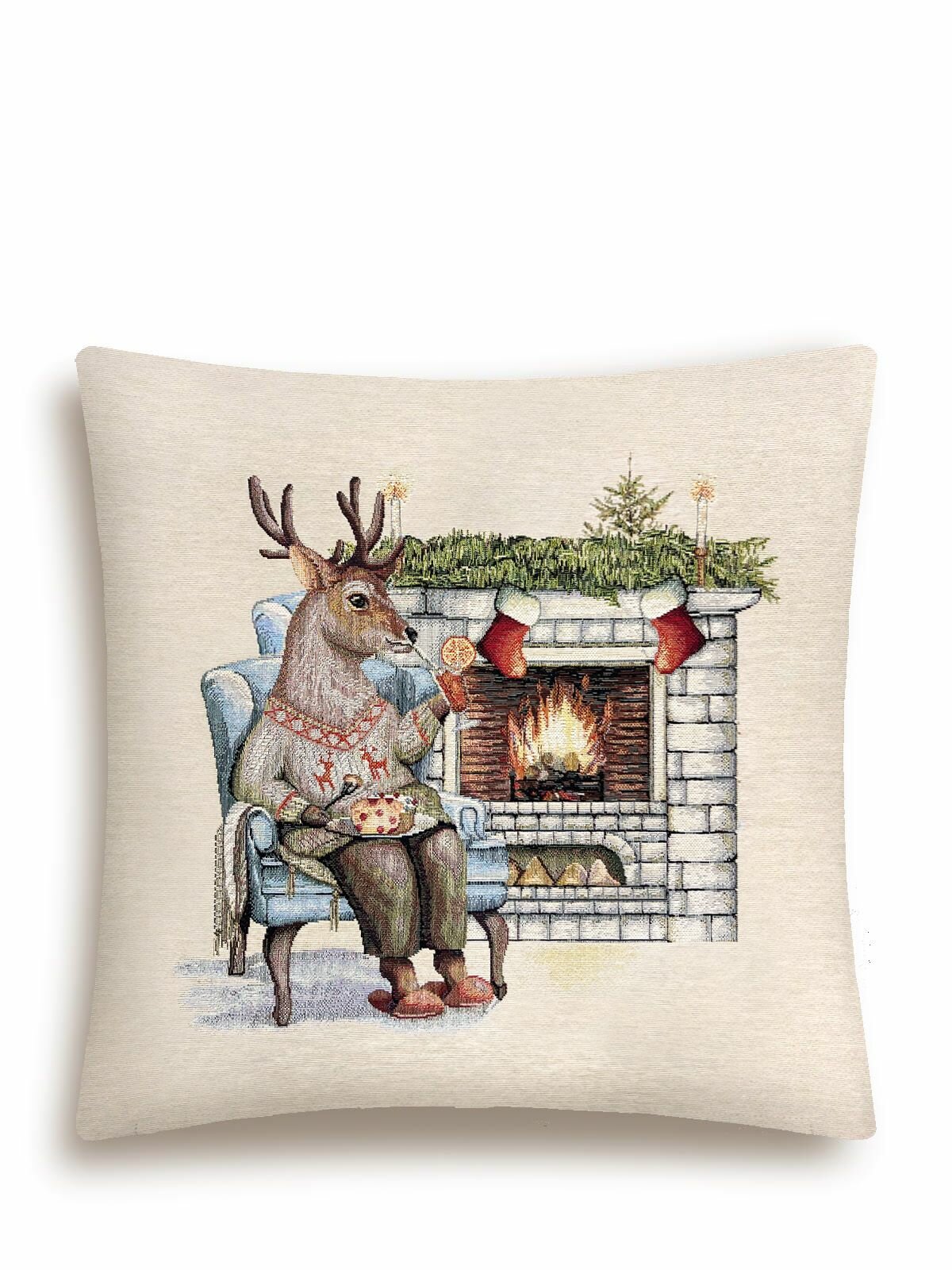 Наволочка на Новый год Le Gobelin У камина олень 45х45 см информация:
