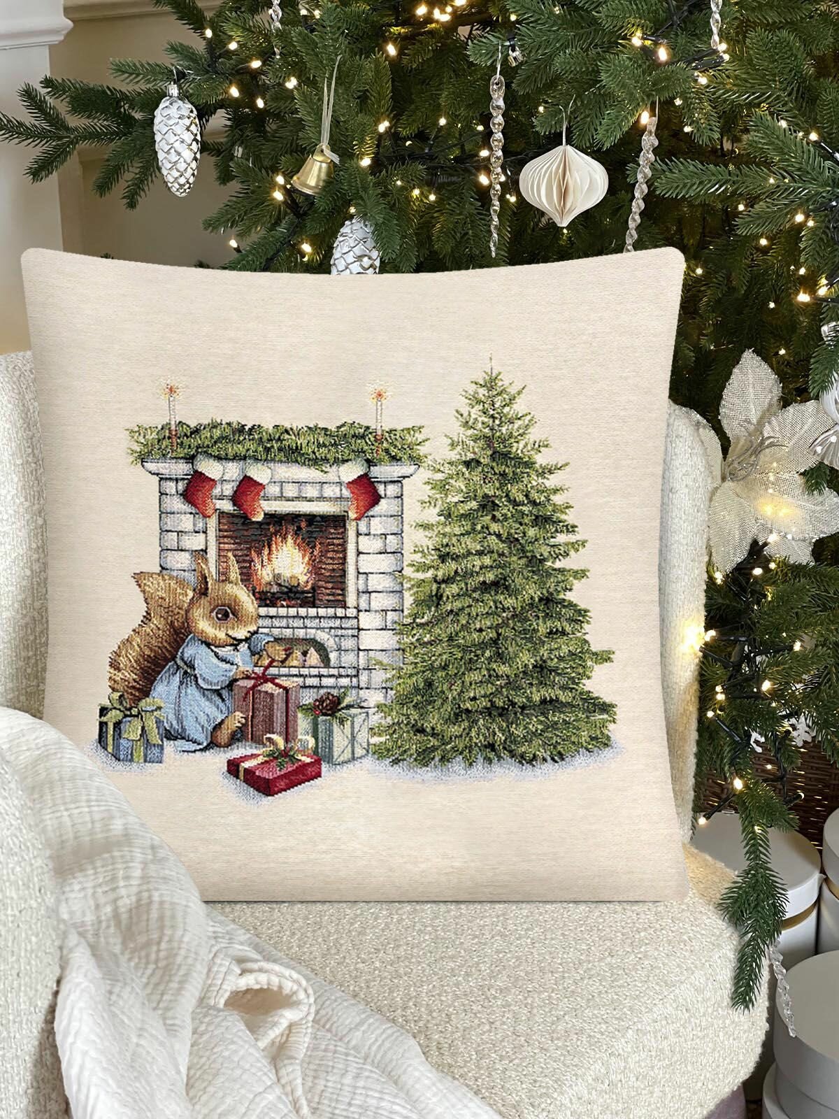 Наволочка на Новый год Le Gobelin У камина белка 45х45 см информация: