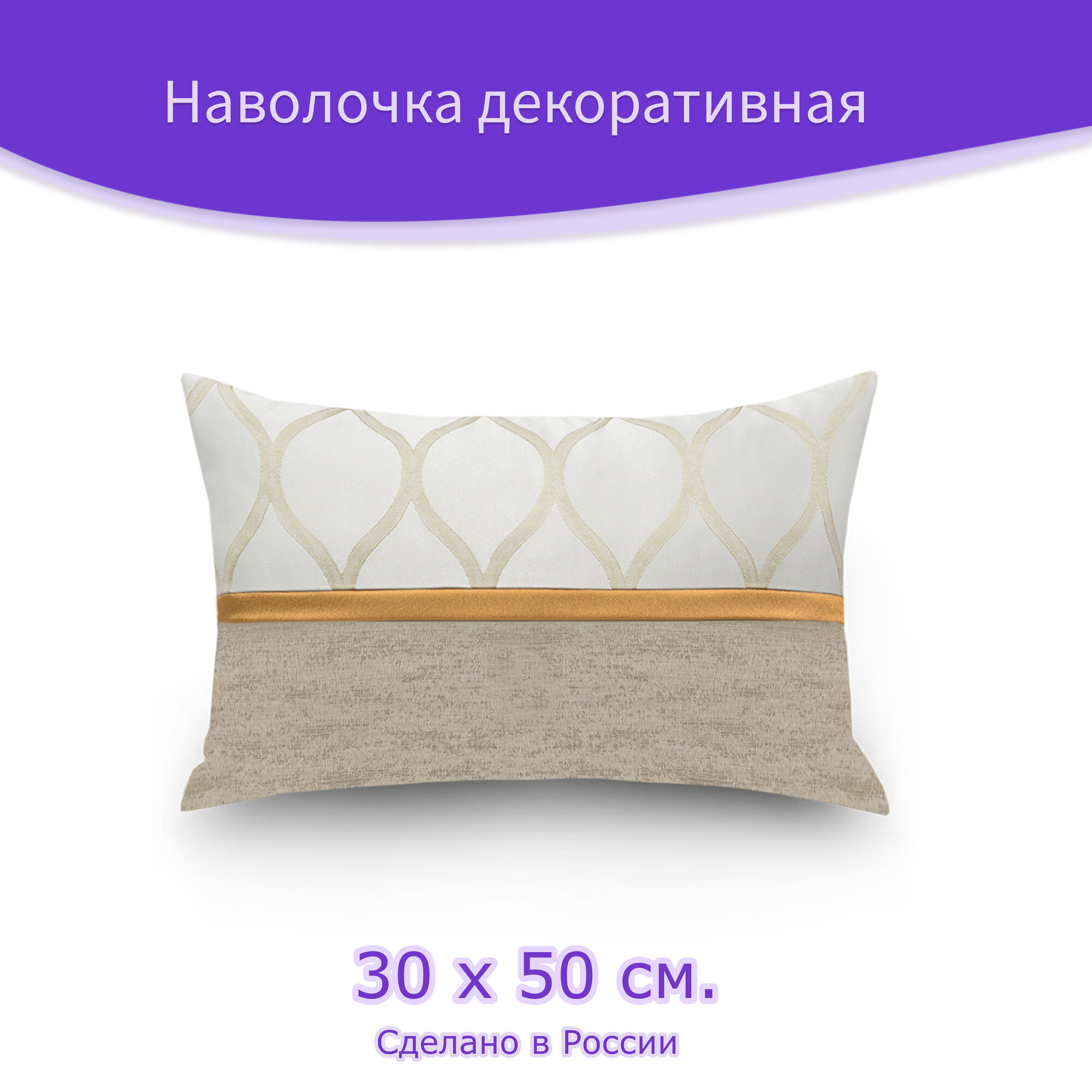 Наволочка - чехол для декоративной подушки на молнии "Irma" 30 х 50 см, бежевый информация: