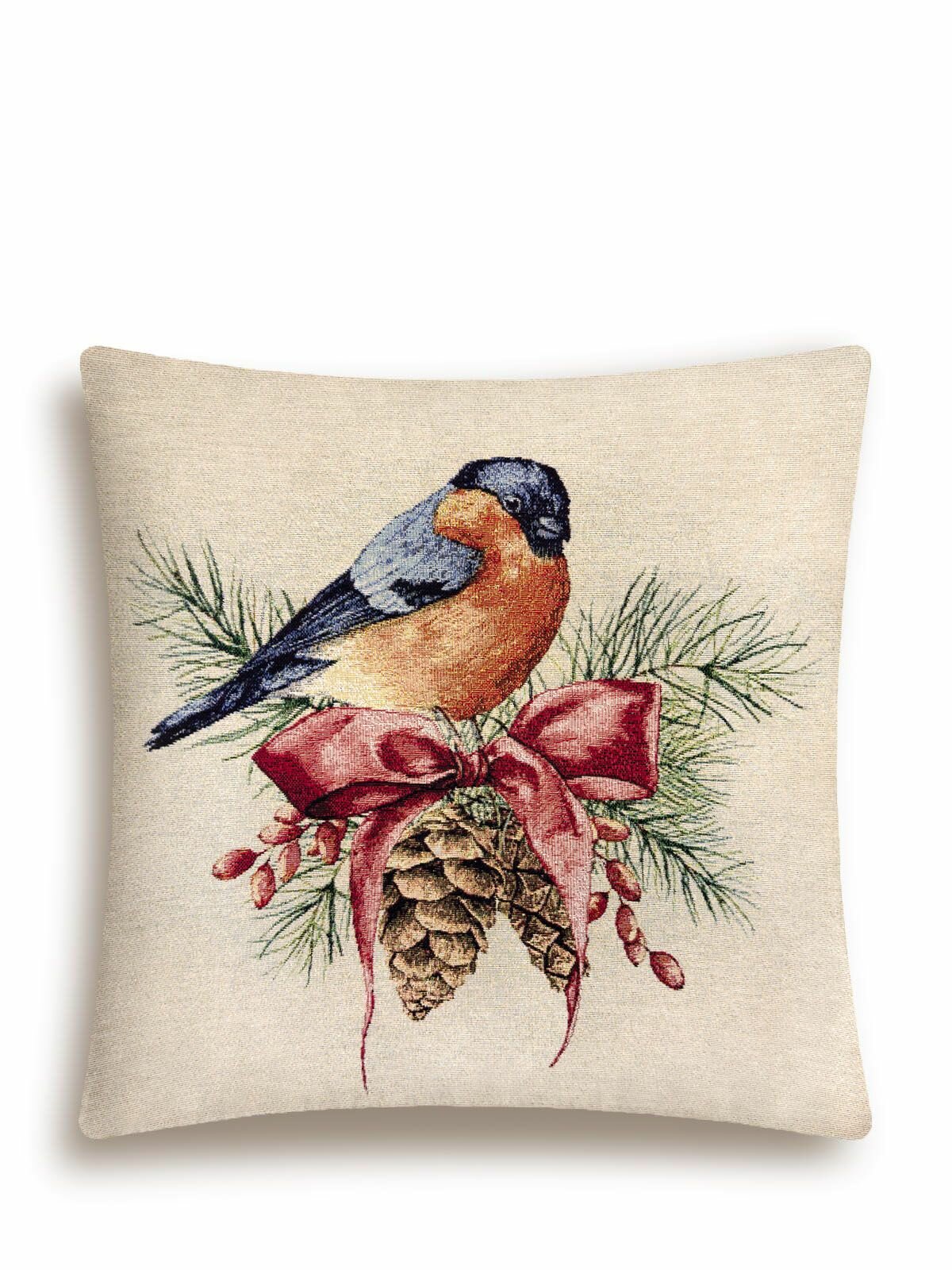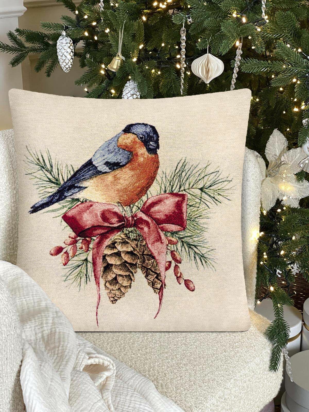 Наволочка новогодняя Le Gobelin Ретро открытка птичка 45х45 см