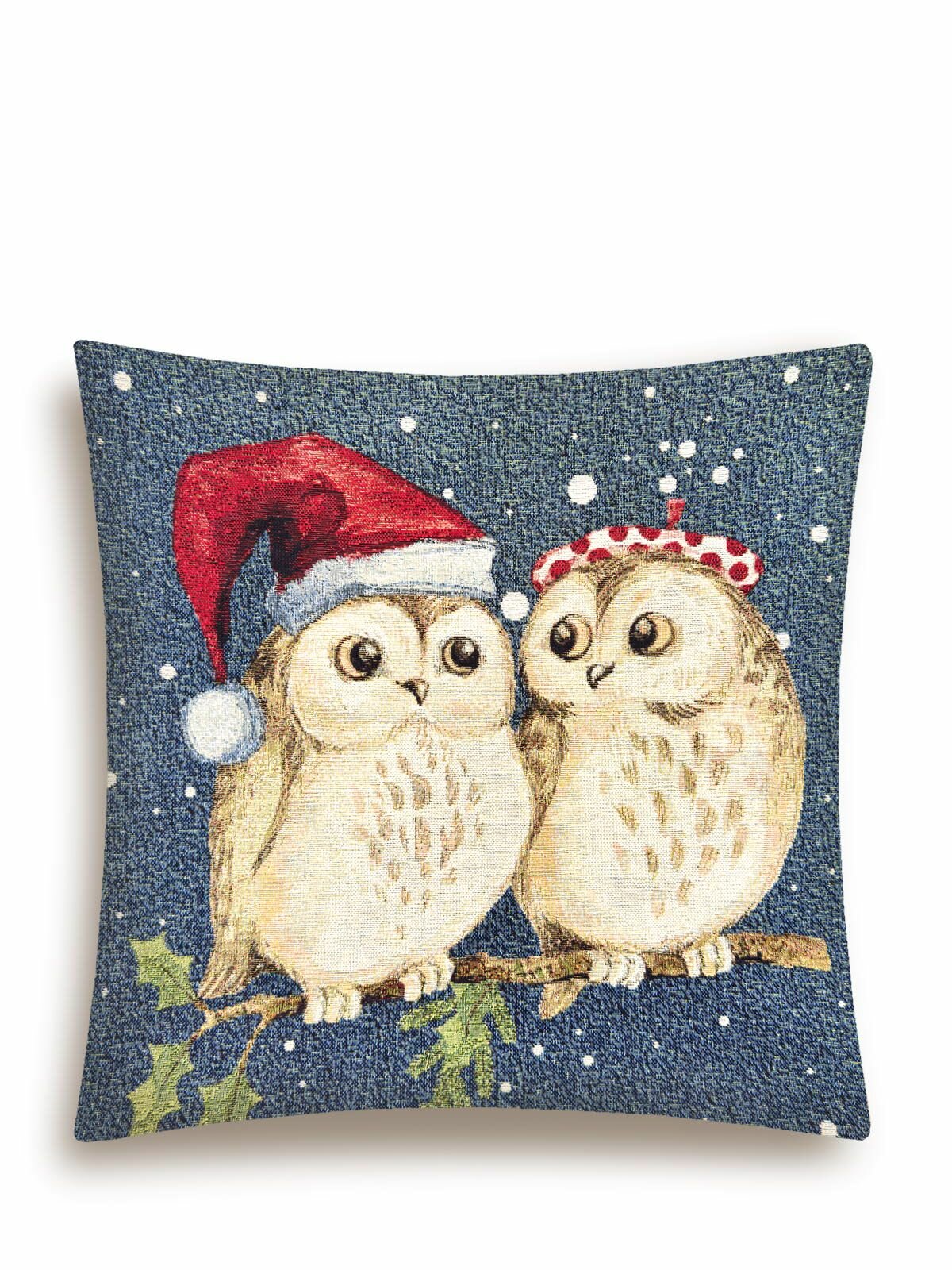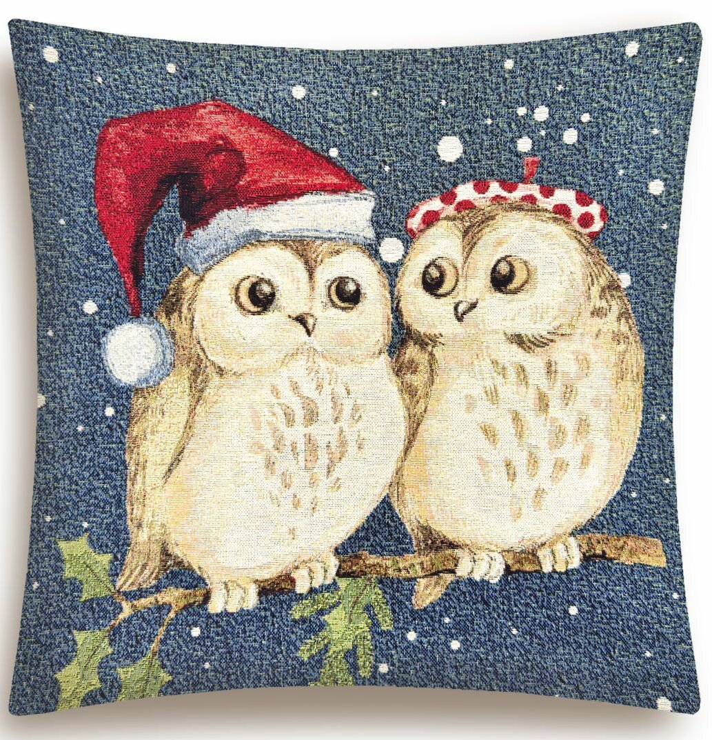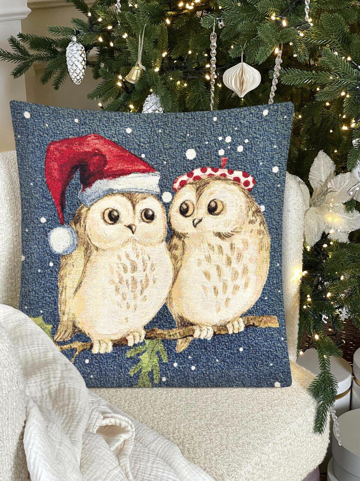 Наволочка новогодняя Le Gobelin Ретро открытка Совушки 45х45 см