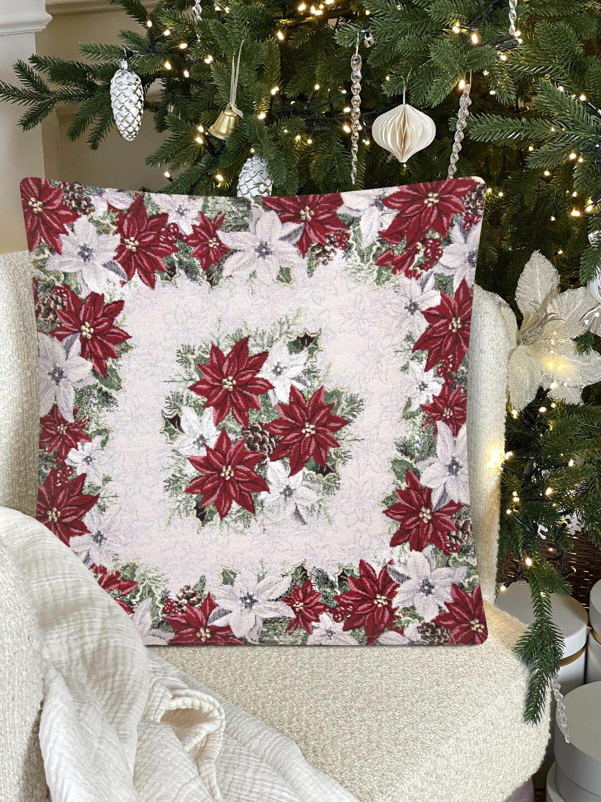Наволочка новогодняя Le Gobelin Пуансетия бордюр 45х45 см информация: