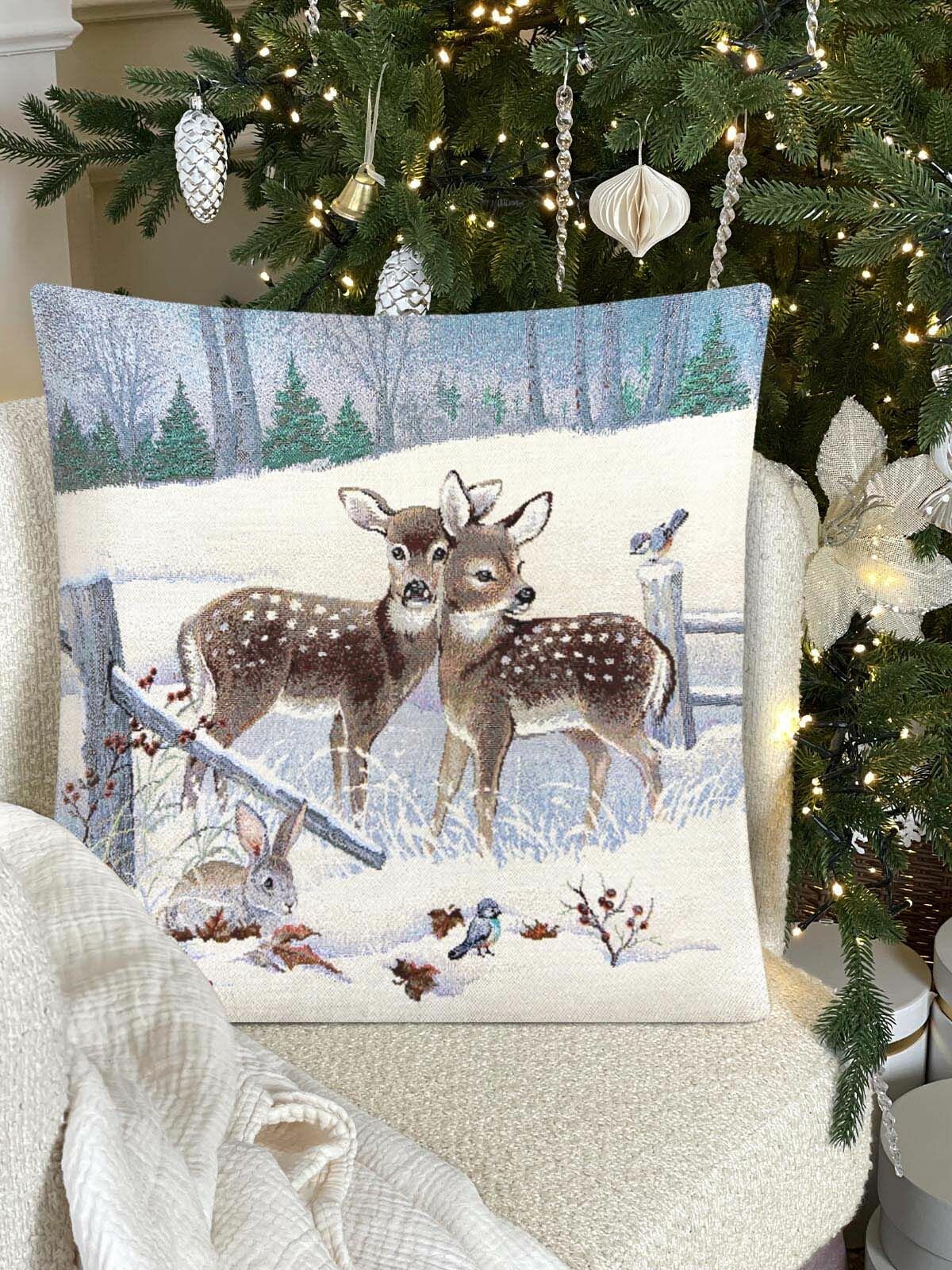Наволочка новогодняя Le Gobelin Лесные друзья два оленя 45x45 см информация: