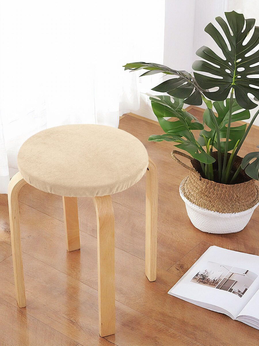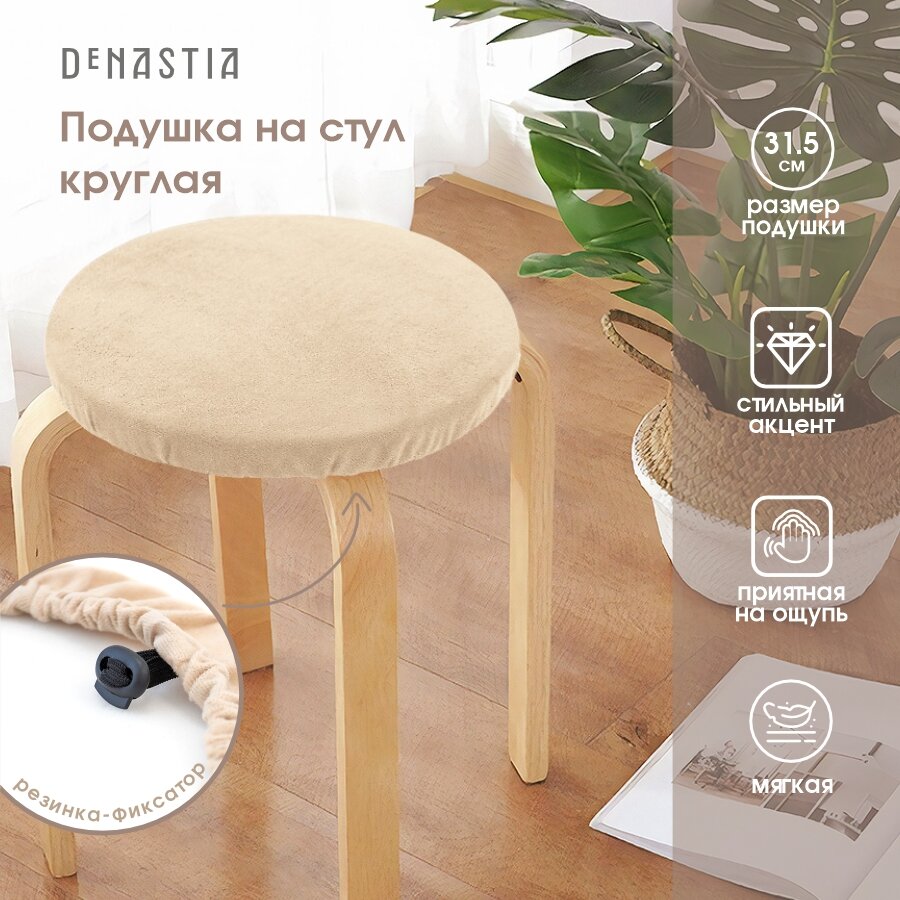 10 цен на Круглая подушка на стул DeNASTIA 31,5см бархатная, цвет молочный