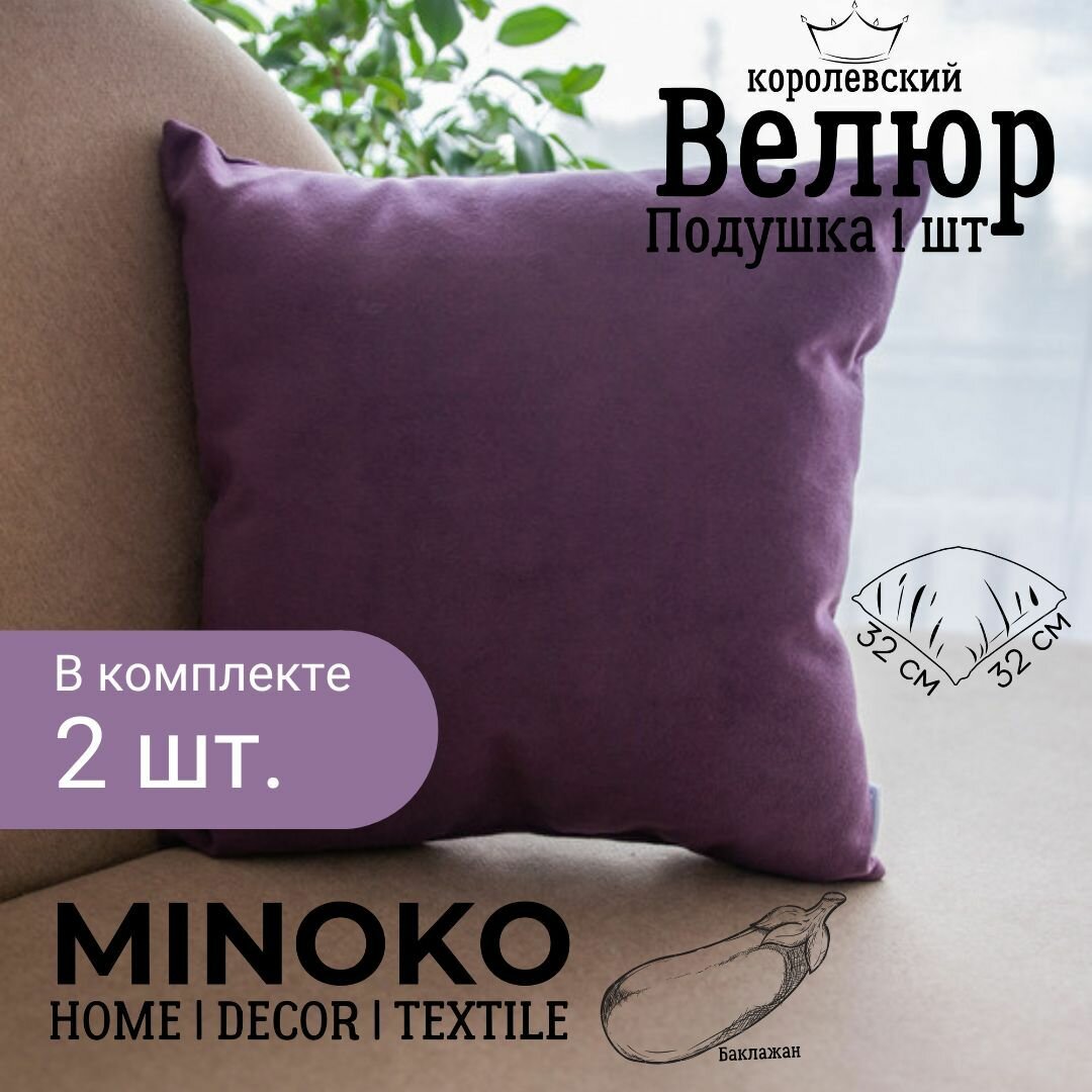 Подушка декоративная / диванная 32 х 32 MINOKO Velure Баклажан Набор 2 шт. информация: