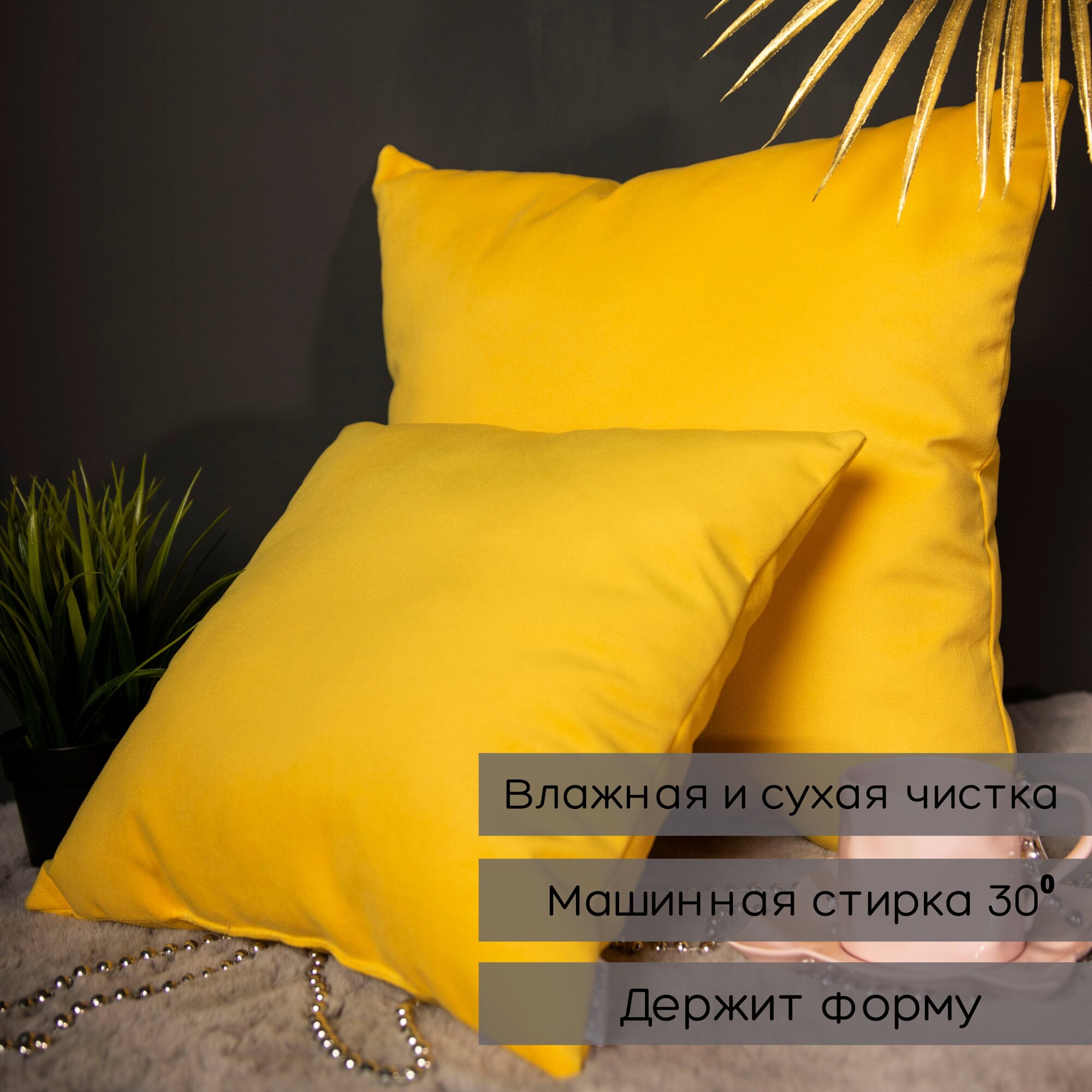 Подушка декоративная / диванная 42 х 42 MINOKO Velure Лимон 2 шт. Съемный чехол 2 378 ₽