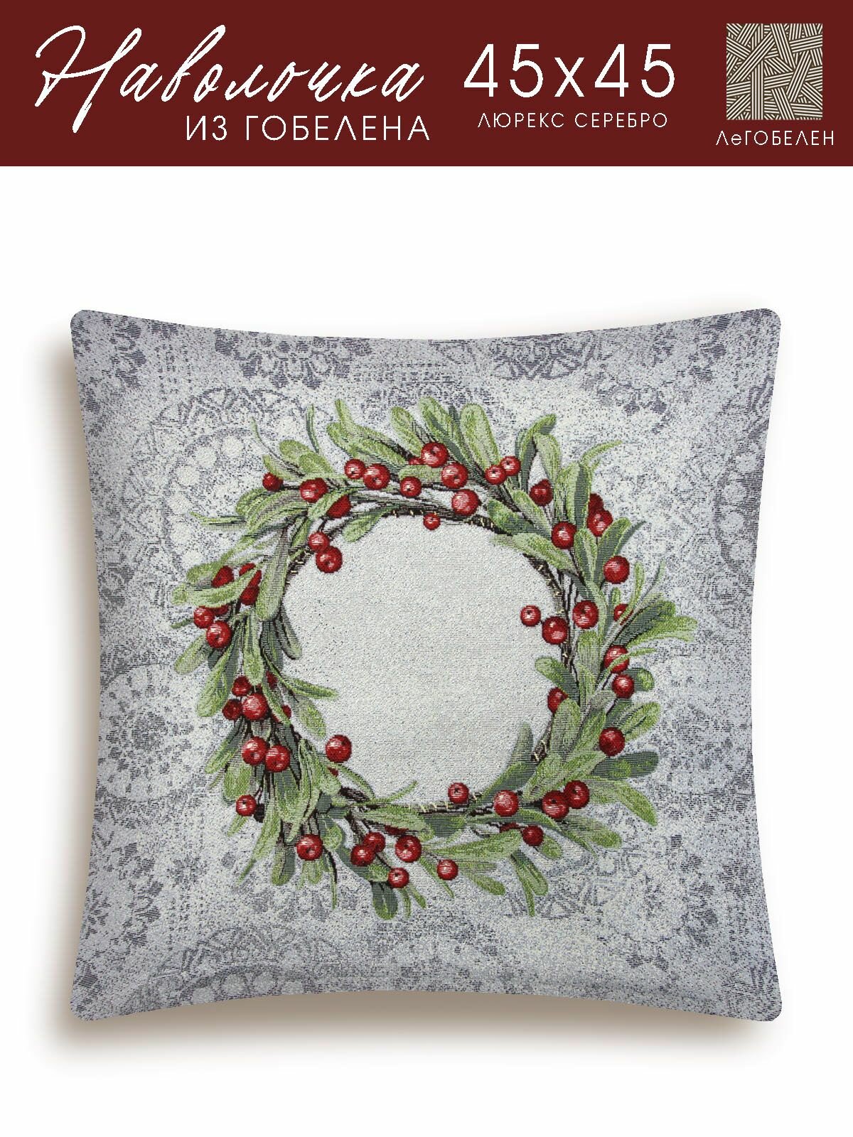 Наволочка декоративная Le Gobelin Новогодние ягоды серо-голубой фон 45х45 см информация: