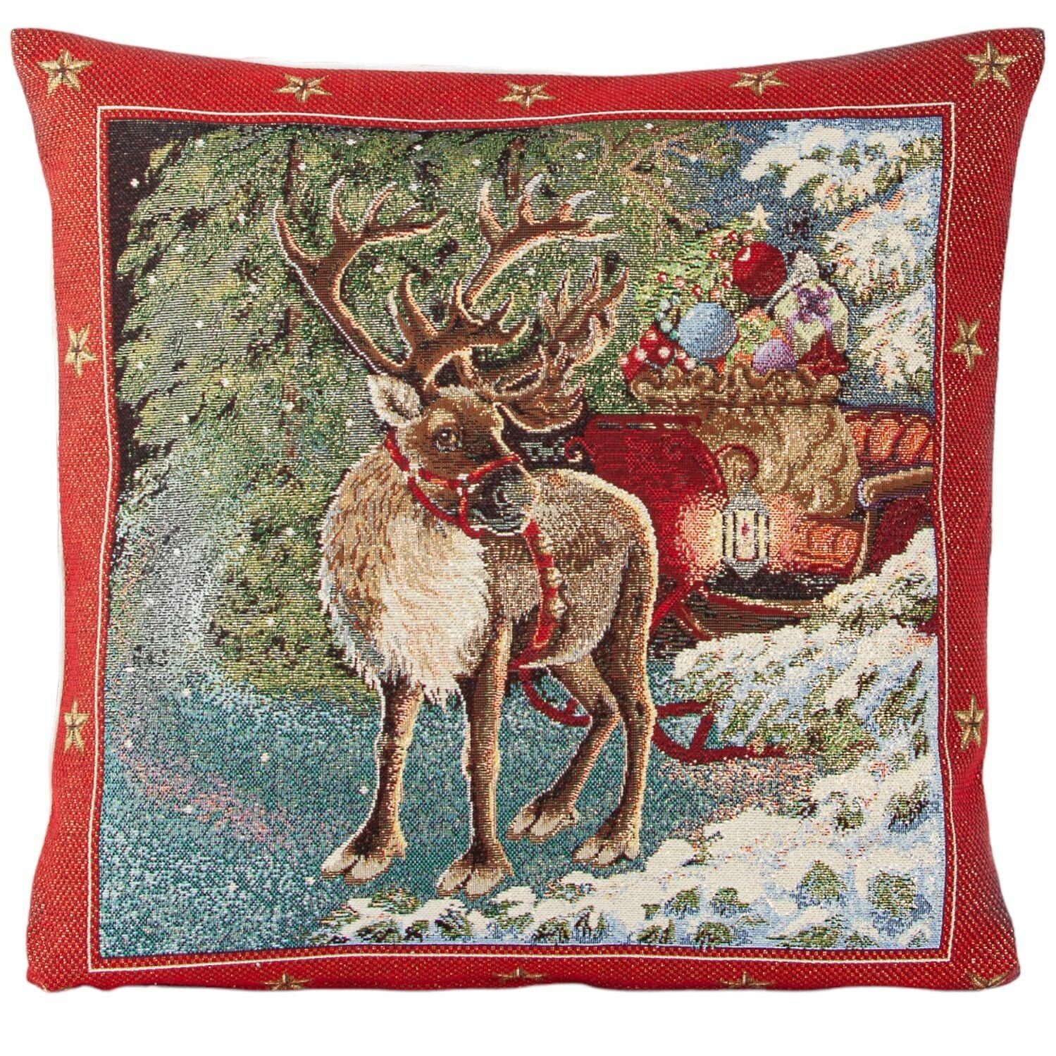 Наволочка на Новый год Le Gobelin Рождественская ночь красный бордюр Елка 45х45 см 1 070 ₽