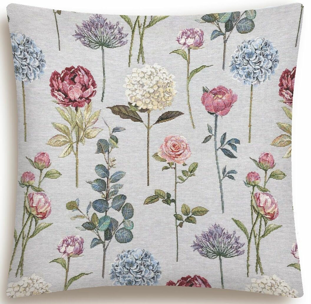 10 цен на Наволочка гобелен Le Gobelin Розы и гортензии Серый 45х45 см н/р