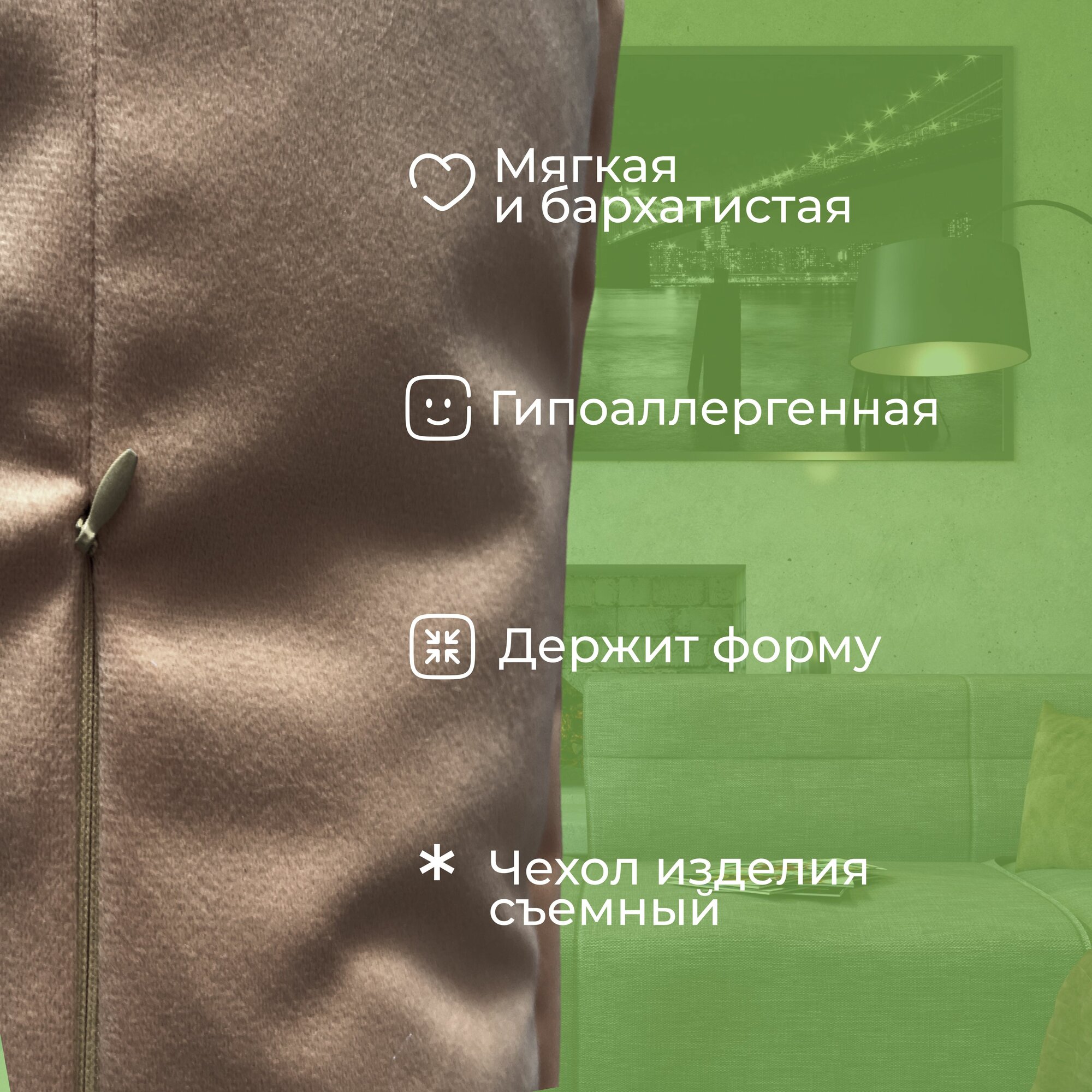 Подушка декоративная / диванная 42 х 42 MINOKO Velure Киви / Съемный чехол 1 251 ₽