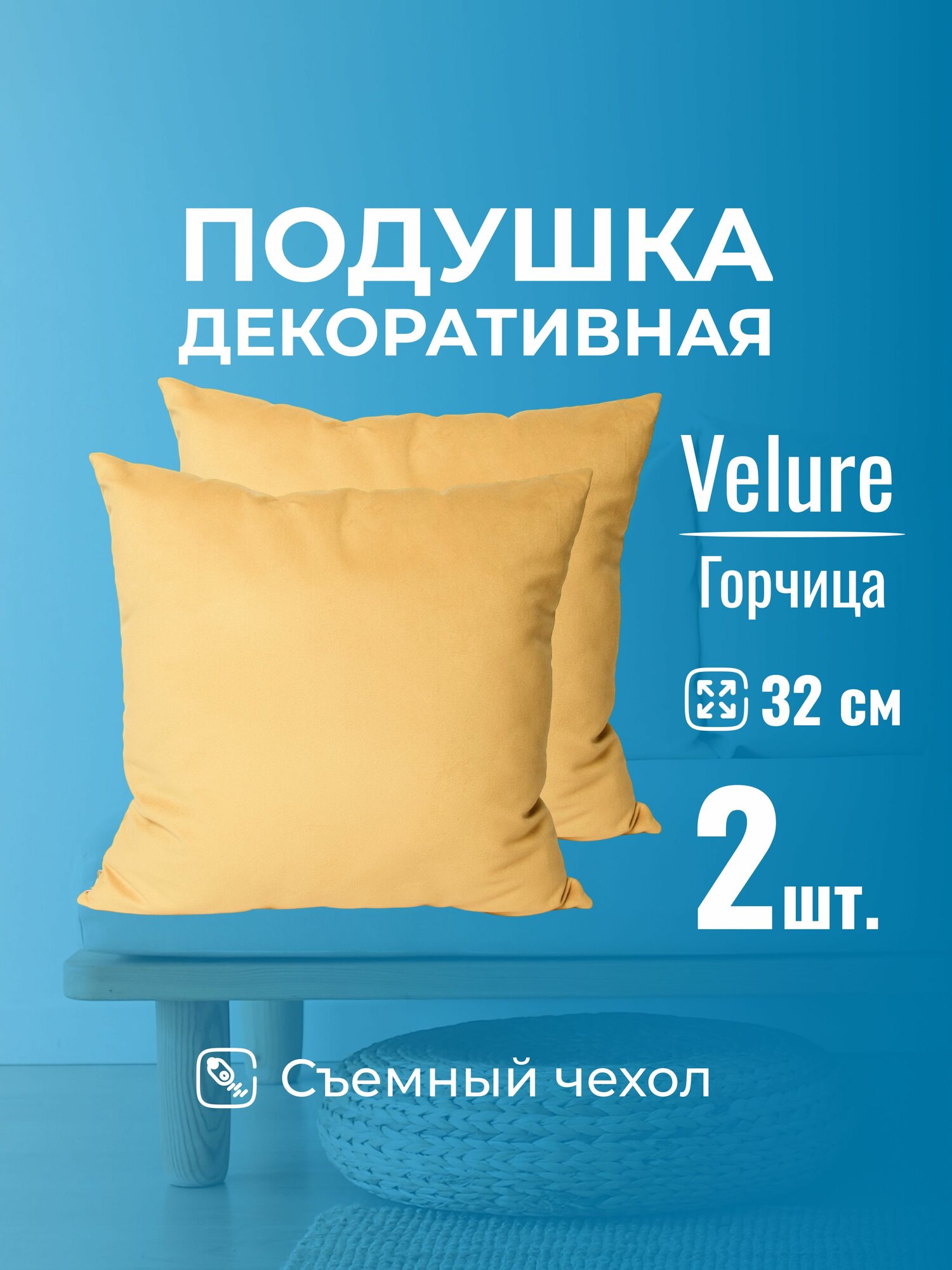 10 цен на Подушка декоративная c молнией 32 х 32 MINOKO Velure Горчица Набор 2 шт.
