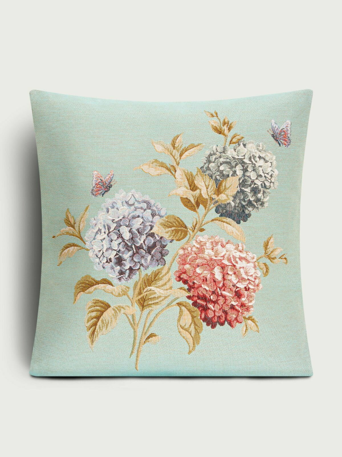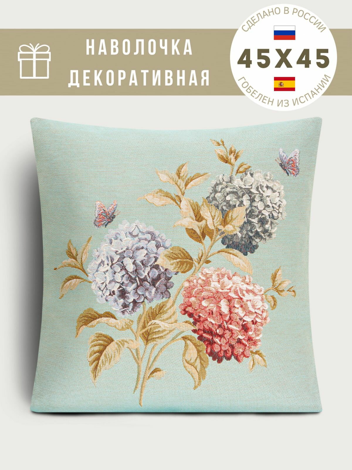 Наволочка декоративная Le Gobelin Английский сад Гортензии и бабочки голубой фон 45х45 см информация: