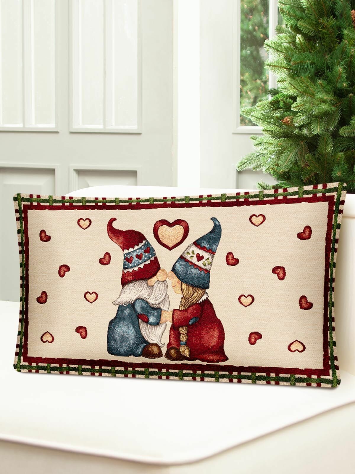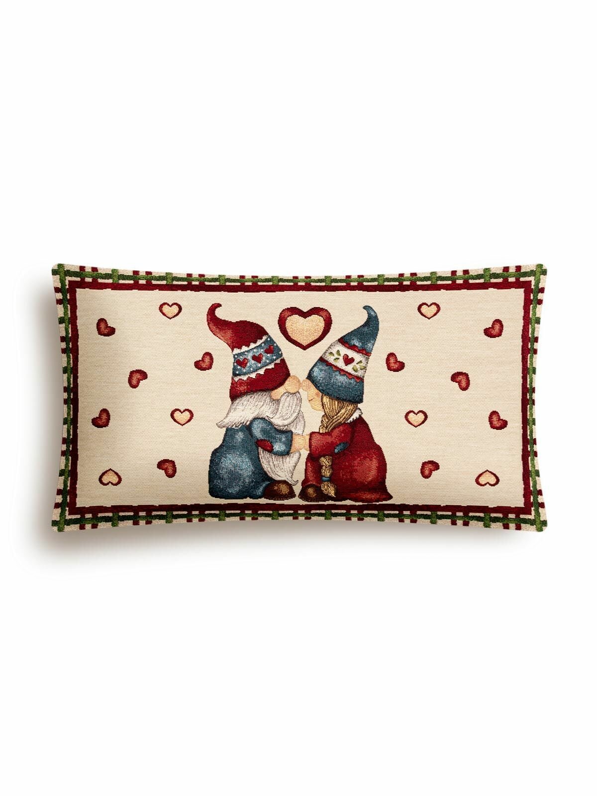 Новогодняя наволочка Le Gobelin Гномы сердечки 45х45 см