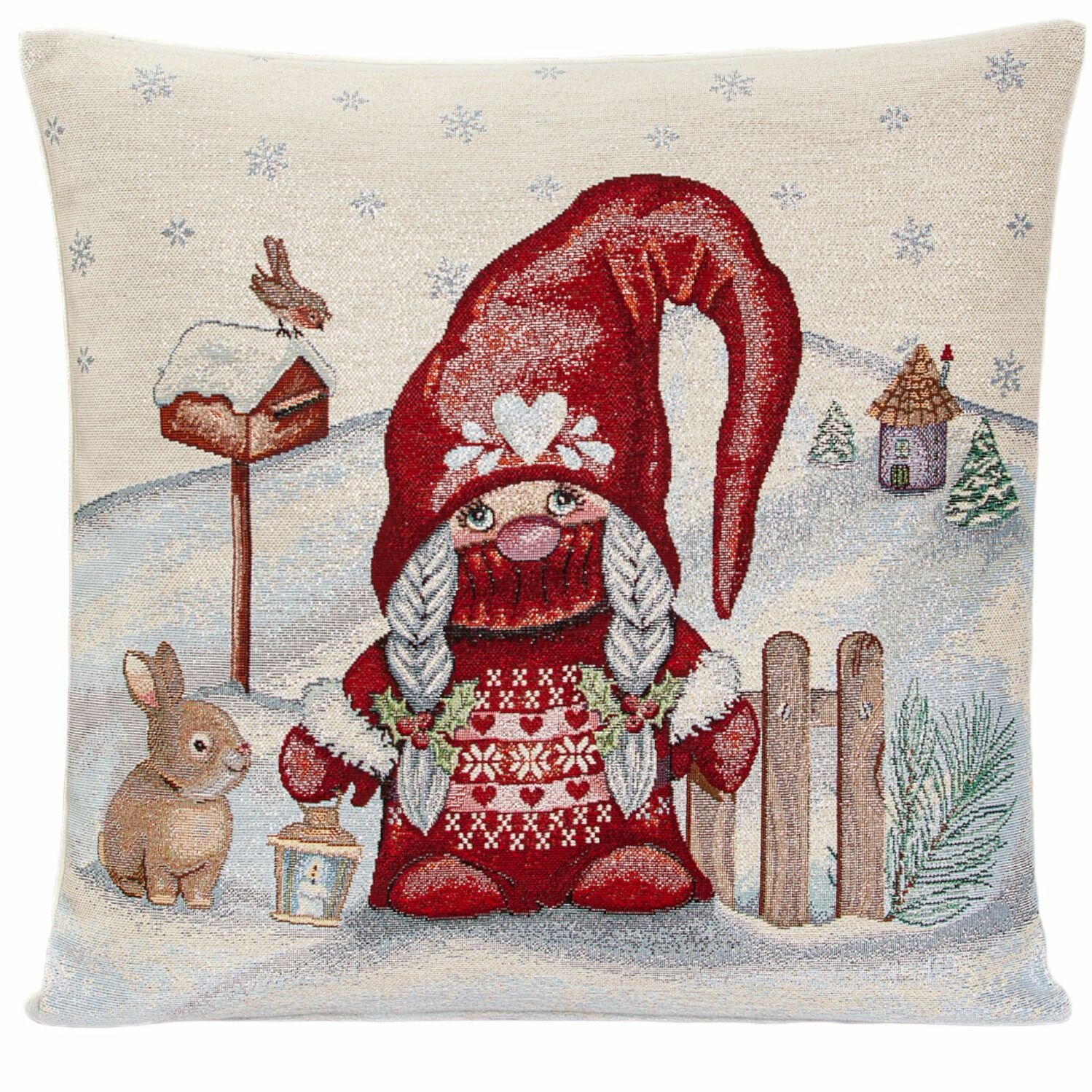Новогодняя наволочка Le Gobelin Гномы сердечки 45х45 см