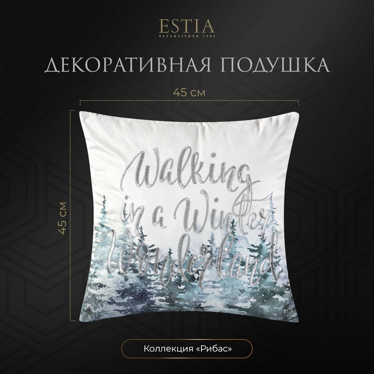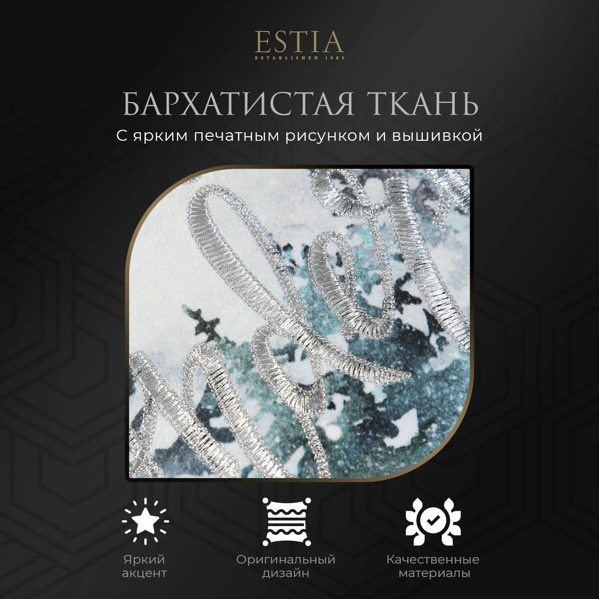 ESTIA Подушка декоративная в подарок "Рибас" бархат, с молнией и вышивкой, 45x45 информация: