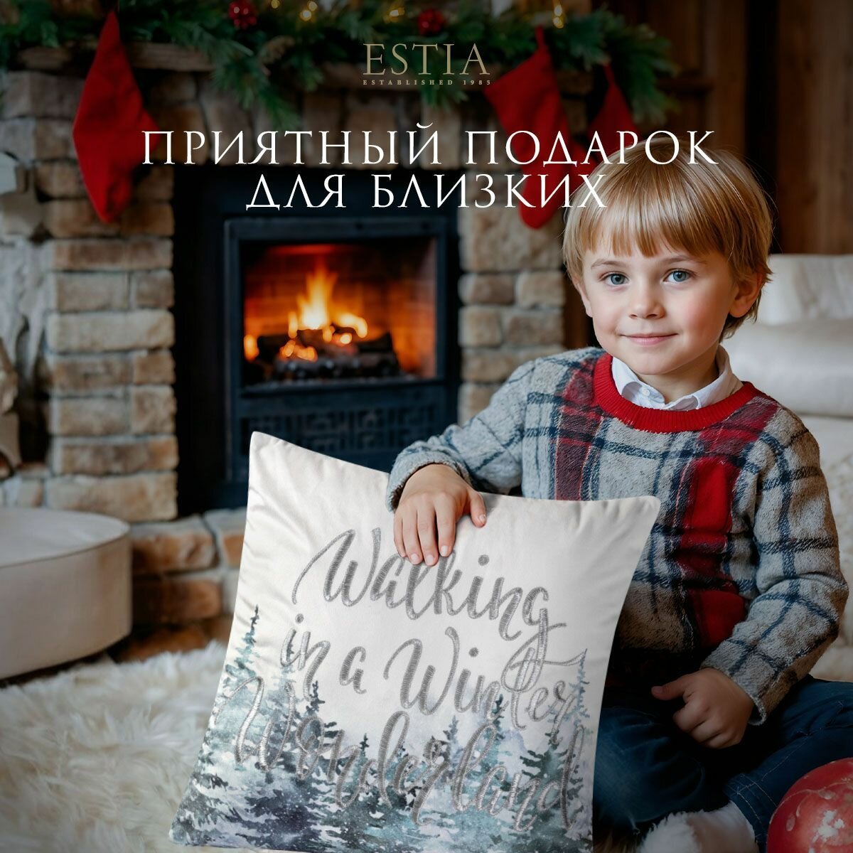 10 цен на ESTIA Подушка декоративная в подарок "Рибас" бархат, с молнией и вышивкой, 45x45