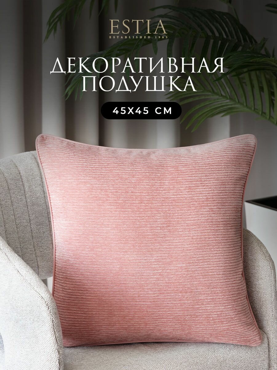 10 цен на ESTIA Подушка декоративная в подарок "Ромина" 45x45, розовая