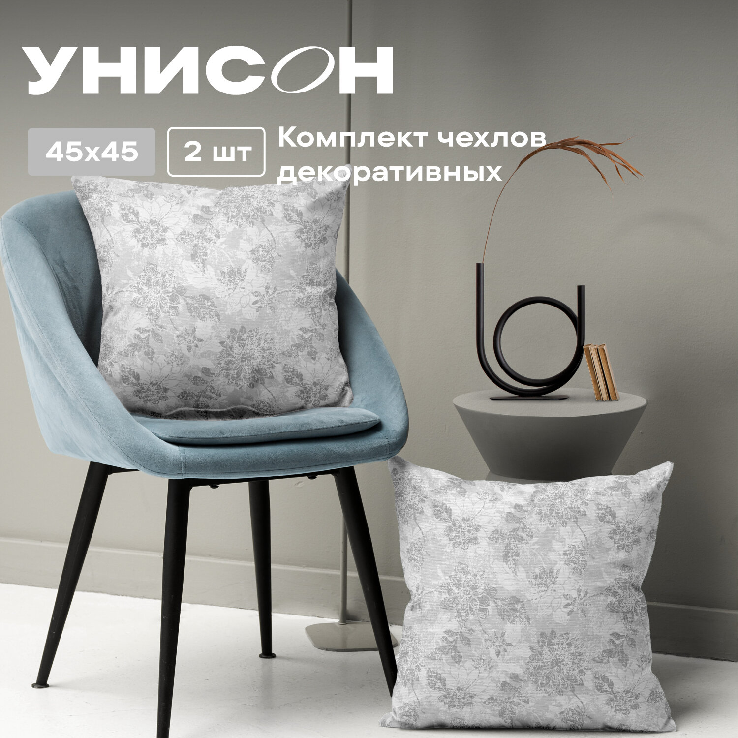 Наволочка декоративная 45х45 (2 шт) на молнии "Унисон" рис 33305-1 Grey jacquard серый информация: