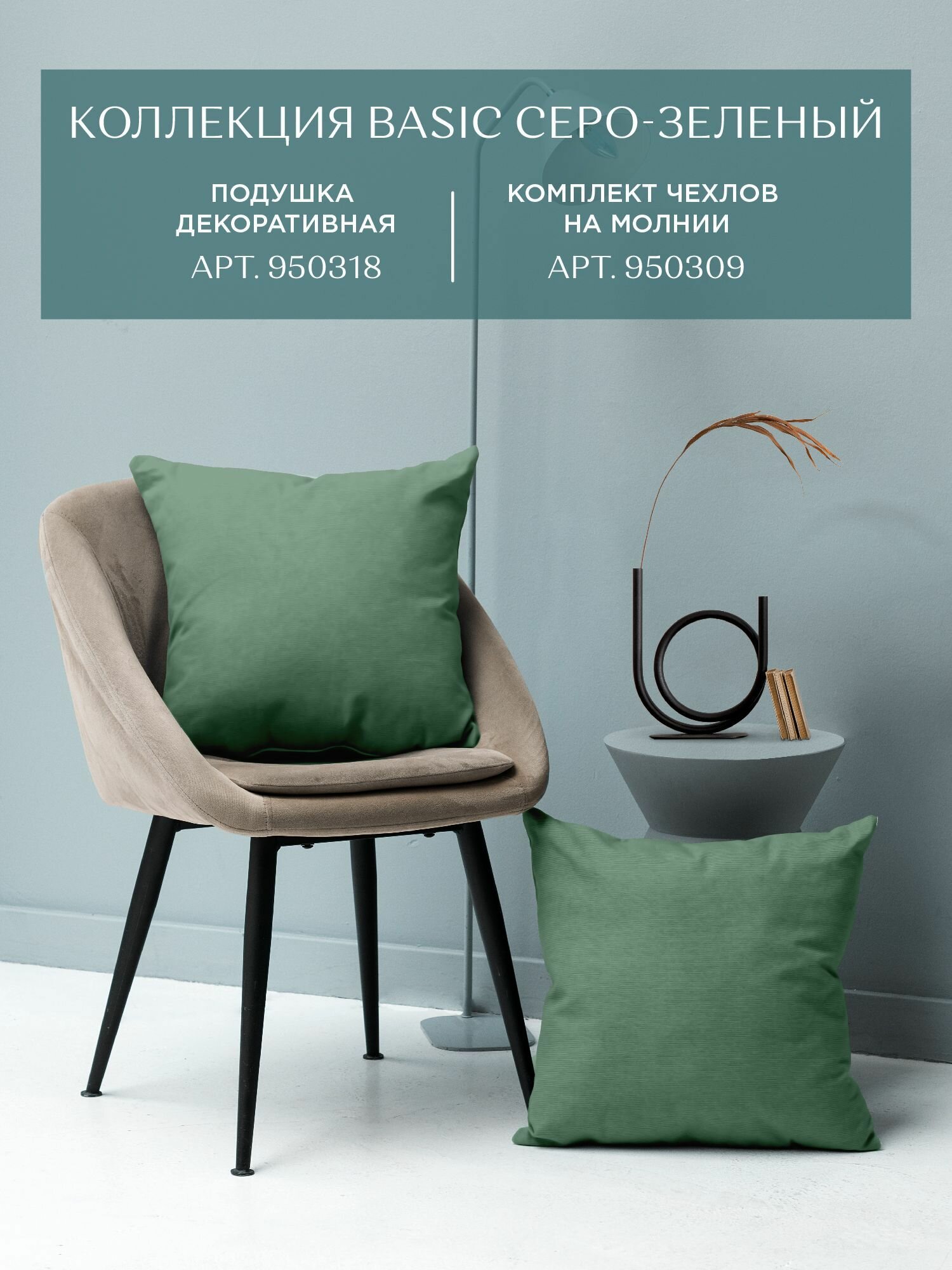 Отзывы на Наволочка декоративная 45х45 (2 шт) на молнии "Унисон" рис 30004-20 Basic серо-зелёный