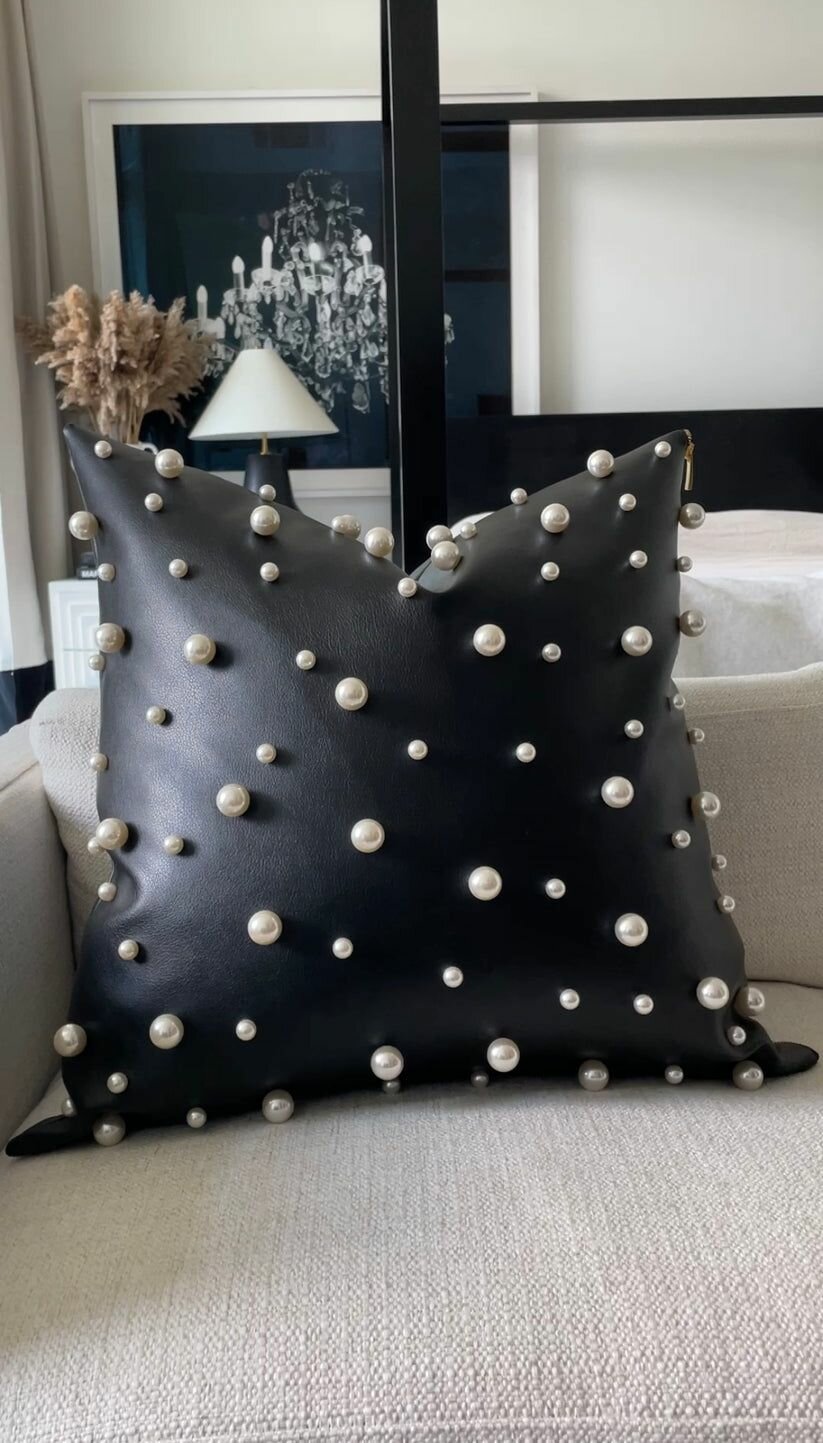 Декоративная подушка Domod 40*40 из экокожи с бусинами. информация:
