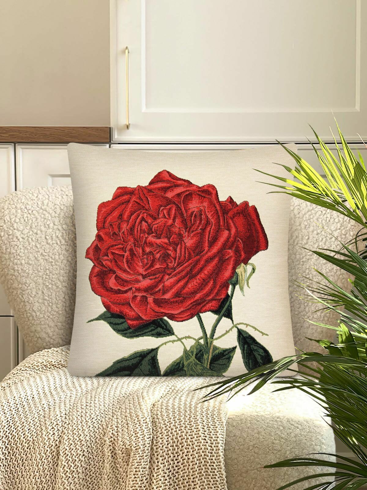 Наволочка из гобелена Le Gobelin Елизабет красная Бежевый фон 45х45 см информация: