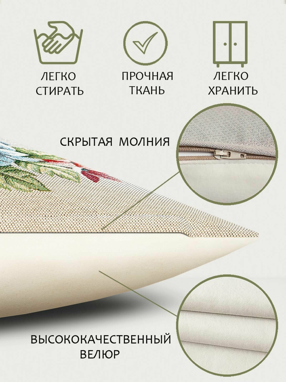 Гобеленовая наволочка Le Gobelin Гортензия льняной фон 45х45 см информация: