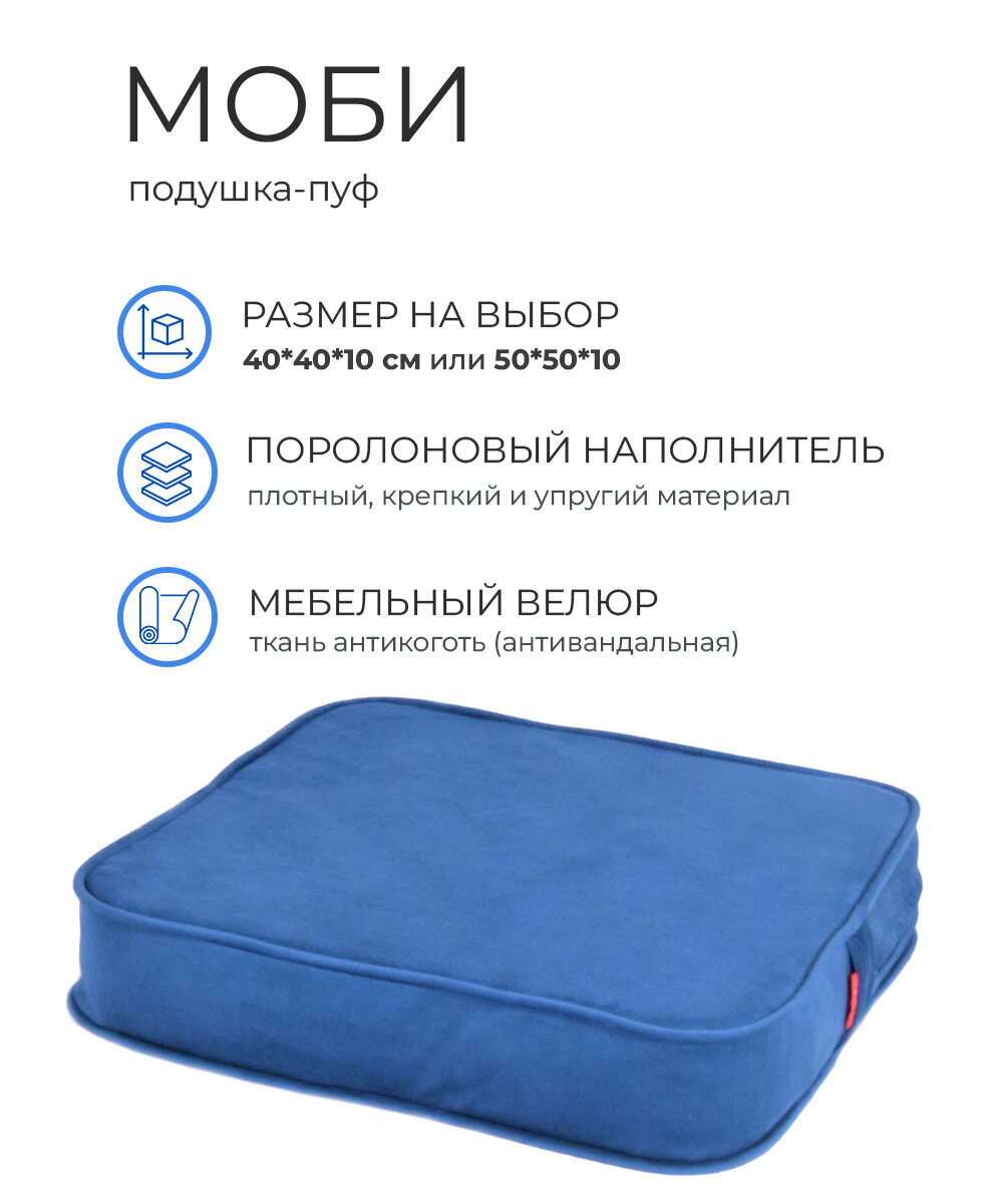 Отзывы на Подушка пуф МОБИ1 50х50х10см для сиденья на диван кресло стул садовые качели на пол поролон велюр (синий / синий)