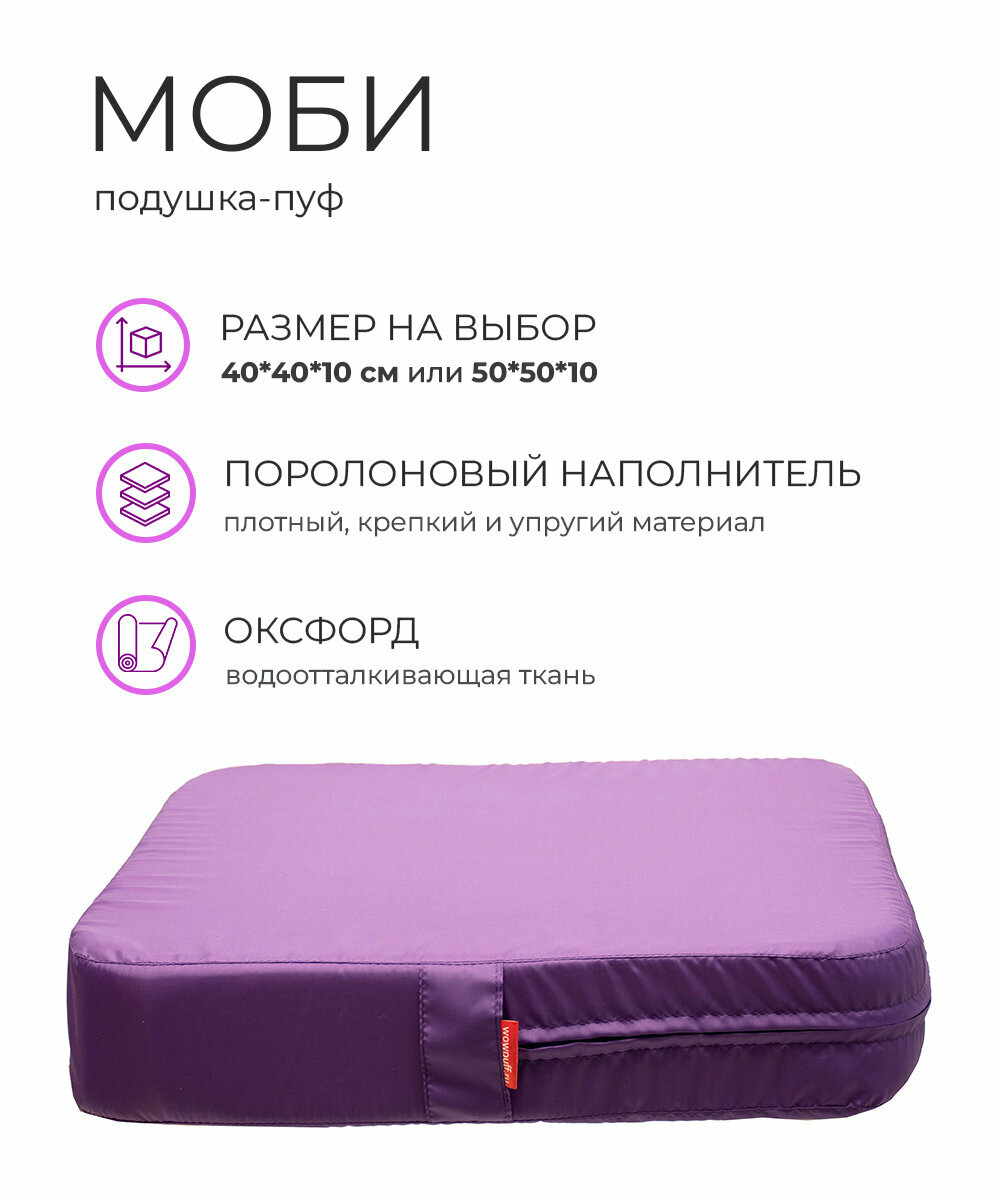 Отзывы на Подушка пуф МОБИ для сиденья на диван кресло стул садовые качели на пол поролон оксфорд 50*10*50 WOWPUFF фиолетовый