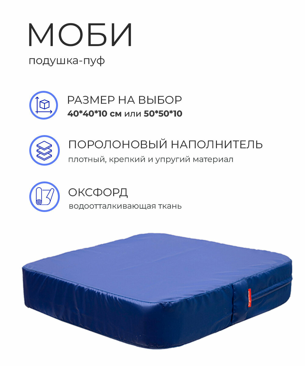 Отзывы на Подушка пуф МОБИ для сиденья на диван кресло стул садовые качели на пол поролон оксфорд 50*10*50 WOWPUFF васильковый