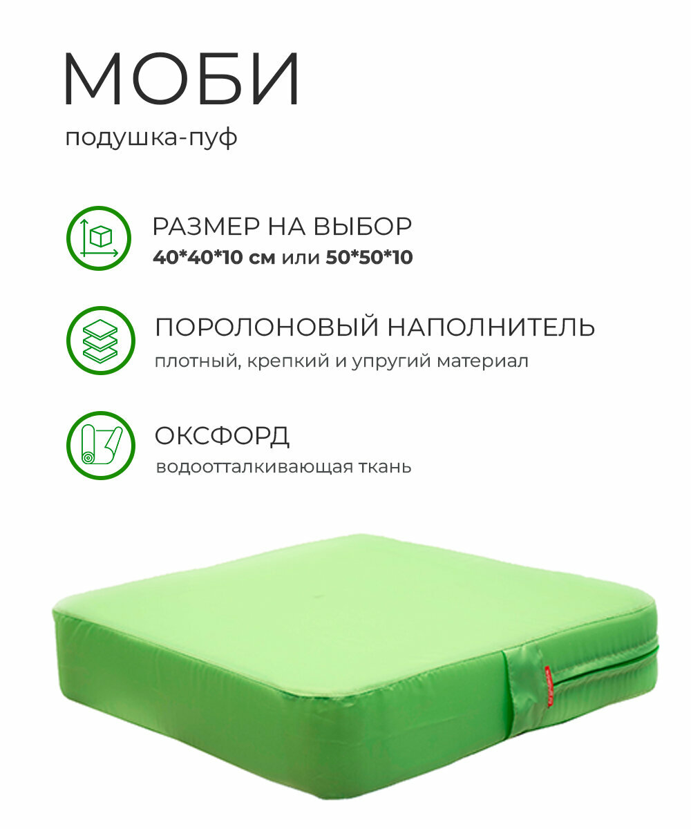 Отзывы на Подушка пуф МОБИ для сиденья на диван кресло стул садовые качели на пол поролон оксфорд 50*10*50 WOWPUFF салатовый