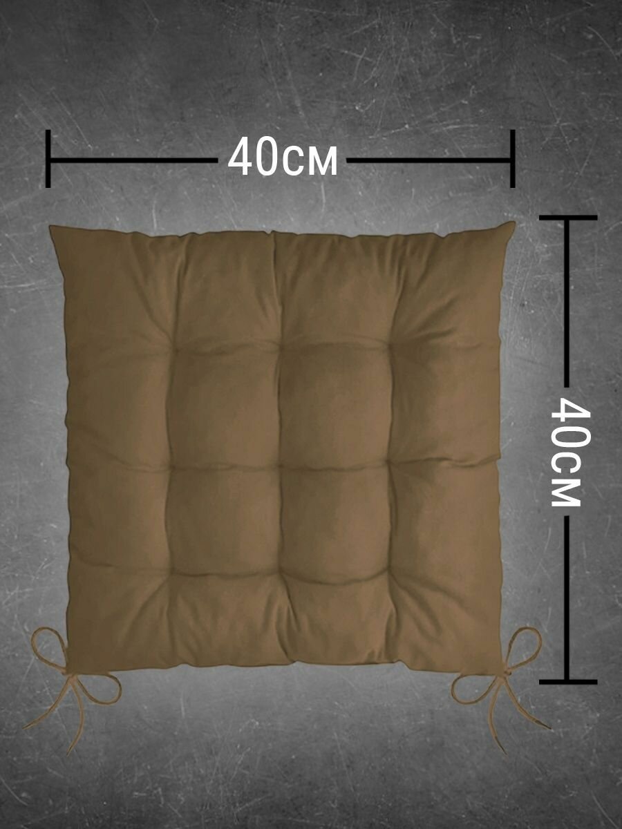 Подушка на стул с завязками Classmark 40х40 см, 100% хлопок / объемная декоративная сидушка подстилка квадратная 4 шт, коричневая информация:
