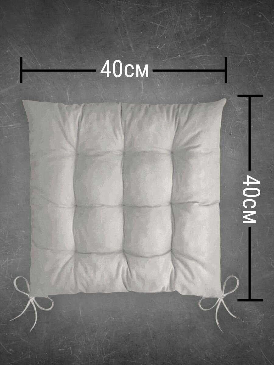 Подушка на стул с завязками Classmark 40х40 см, 100% хлопок / объемная декоративная сидушка подстилка квадратная 3 шт, серая информация: