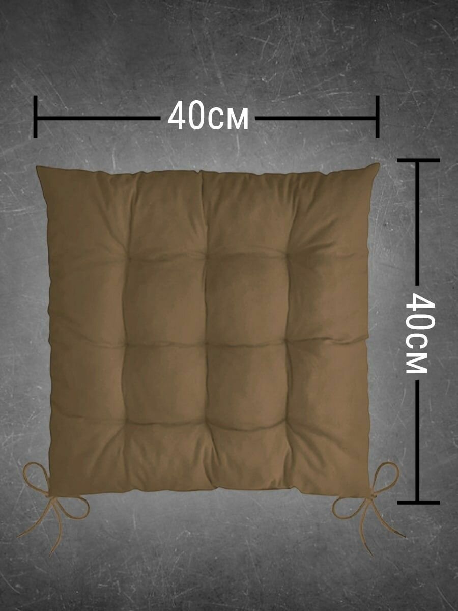 Подушка на стул с завязками Classmark 40х40 см, 100% хлопок / объемная декоративная сидушка подстилка квадратная, коричневая информация: