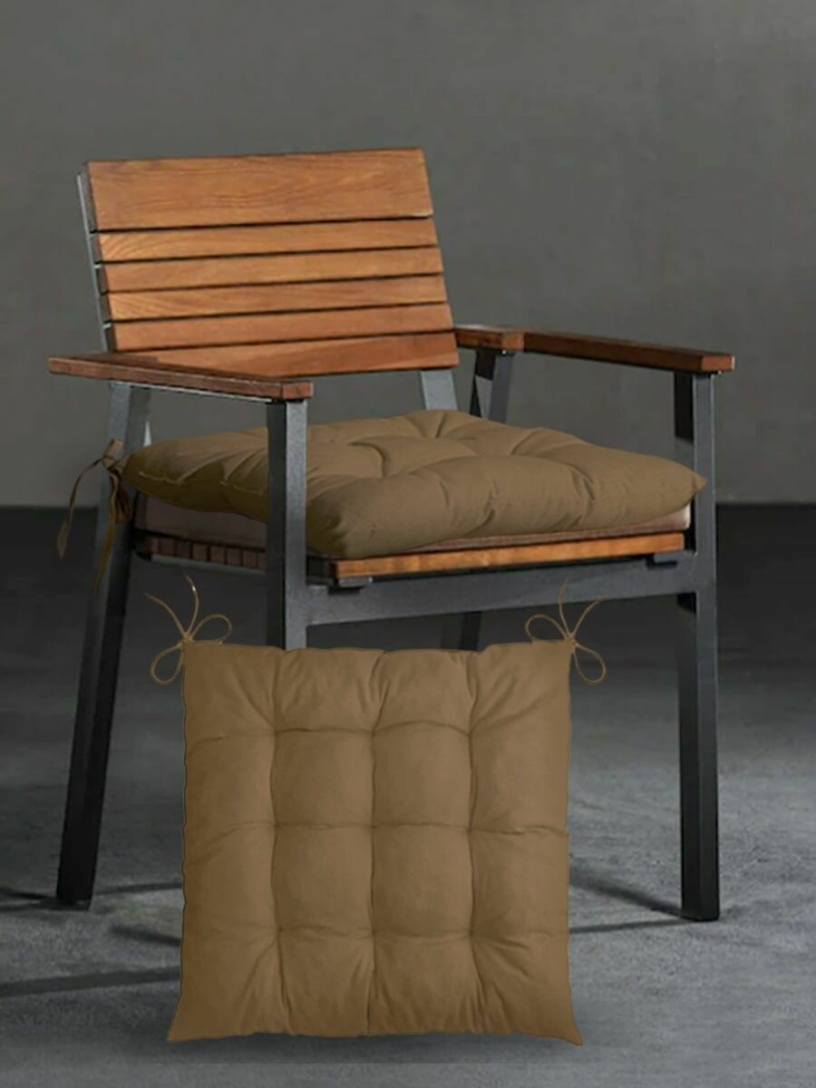 10 цен на Подушка на стул с завязками Classmark 40х40 см, 100% хлопок / объемная декоративная сидушка подстилка квадратная, коричневая
