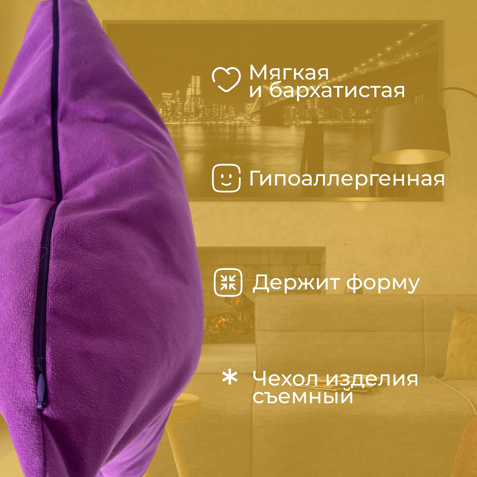 Подушка декоративная / диванная 42 х 42 MINOKO Velure Баклажан 2 шт. / Съемный чехол 2 378 ₽