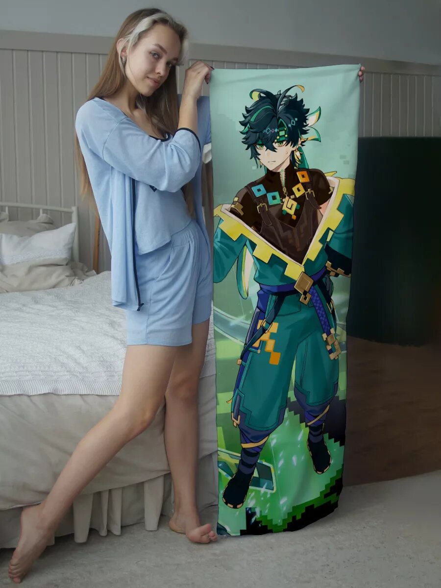 Отзывы на Наволочка декоративная на молнии для подушки дакимакура Геншин импакт Кинич подарок 150х50