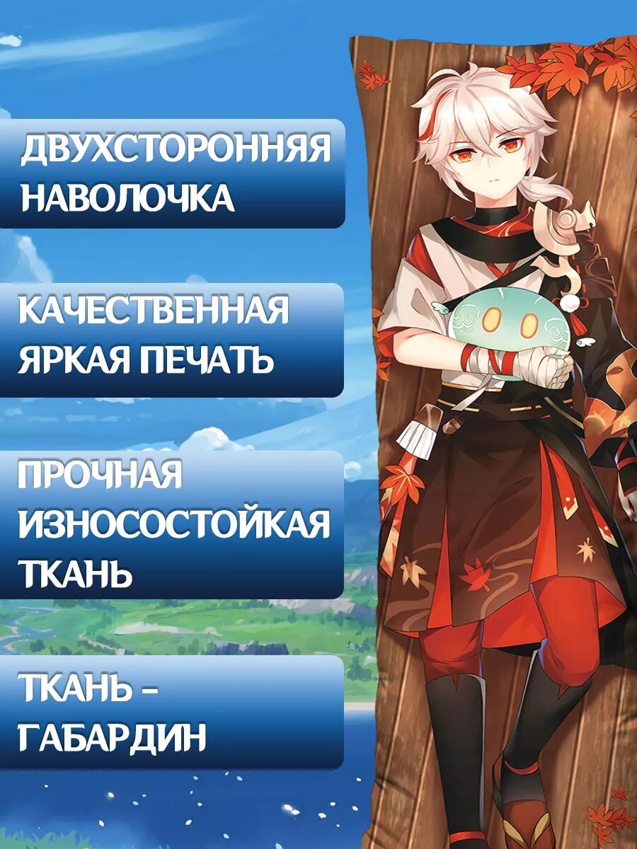 Отзывы на Наволочка декоративная на молнии для подушки дакимакура genshin Геншин импакт Кадзуха 150х50