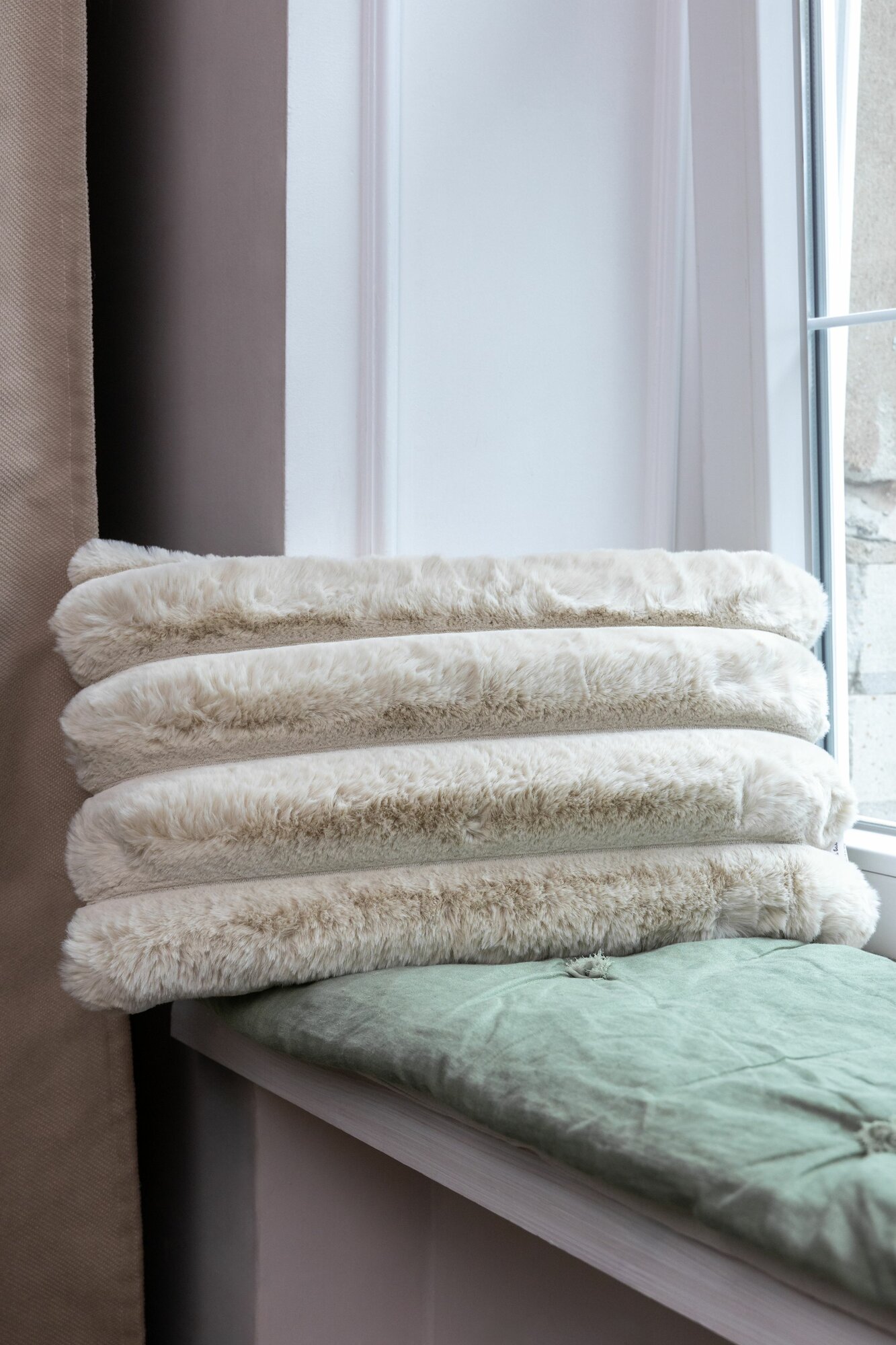 Отзывы на Подушка декоративная из кроличьего меха в полоску, 30х50см, кремовый