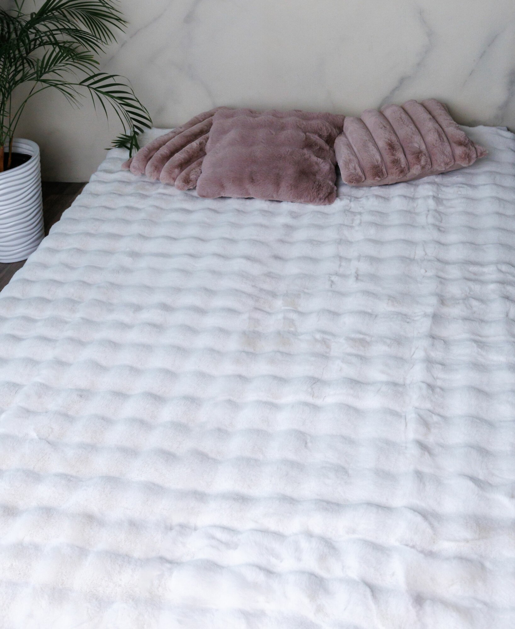 Подушка декоративная из кроличьего меха в полоску, 30х50см, белый 1 600 ₽