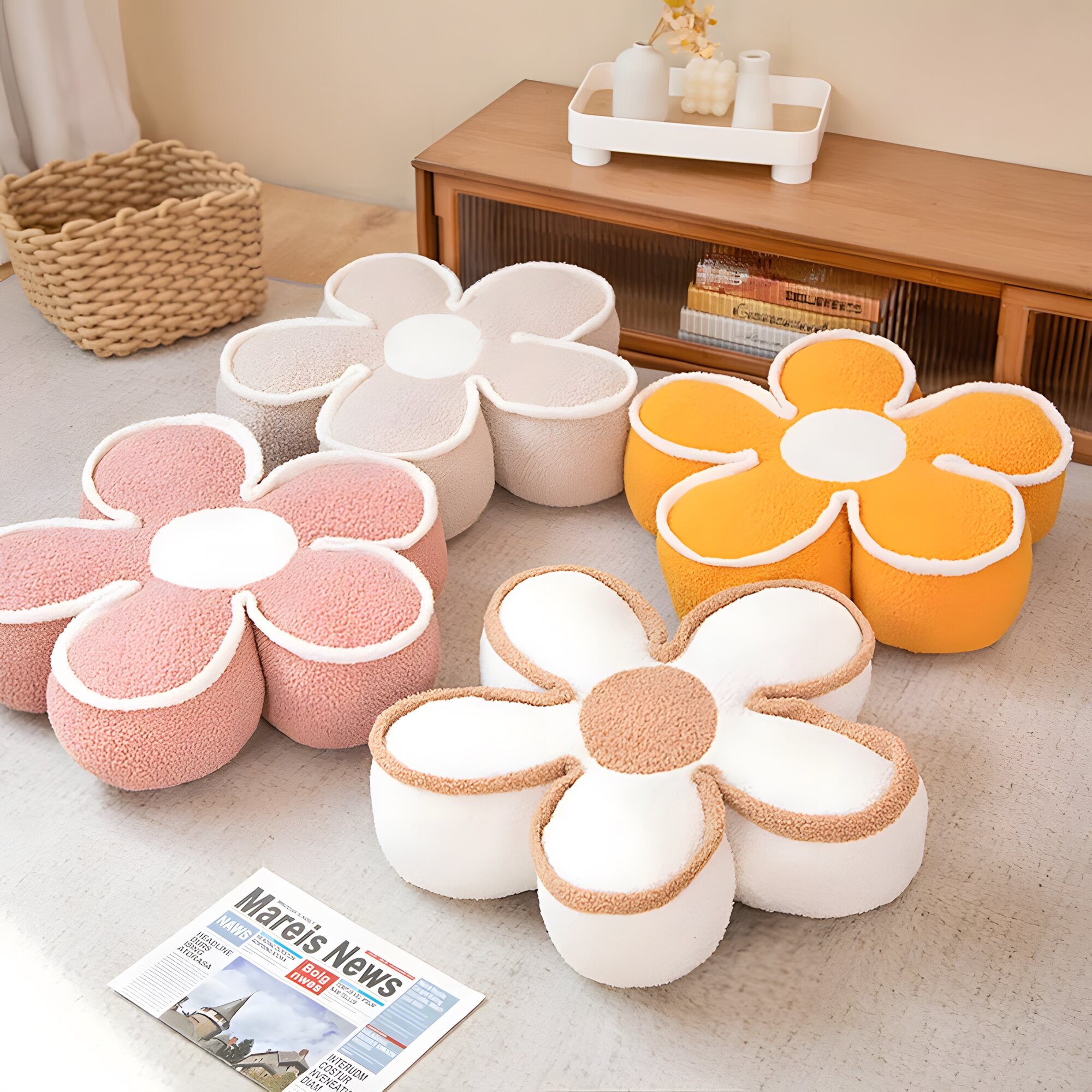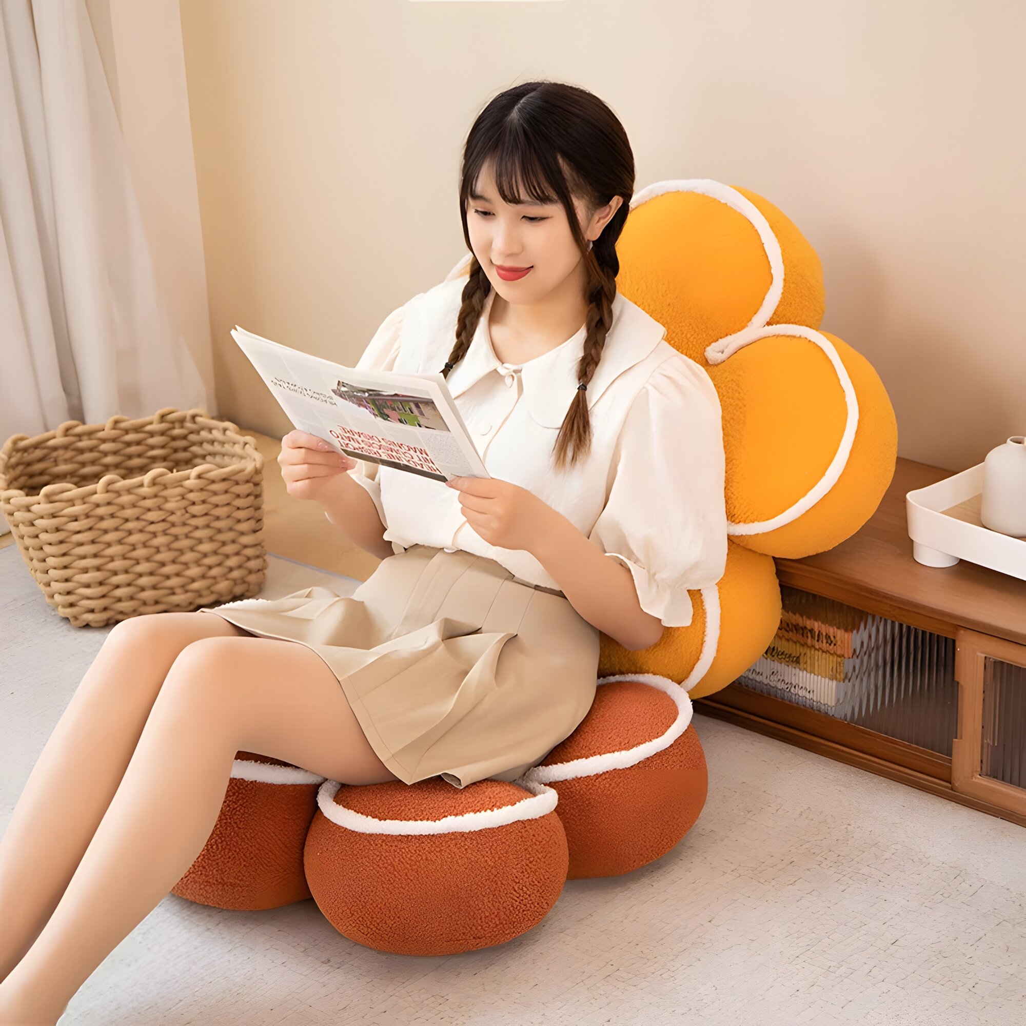 Отзывы на Подушка плюшевая на стул декоративная "Милый цветок", 60см, цвет белый