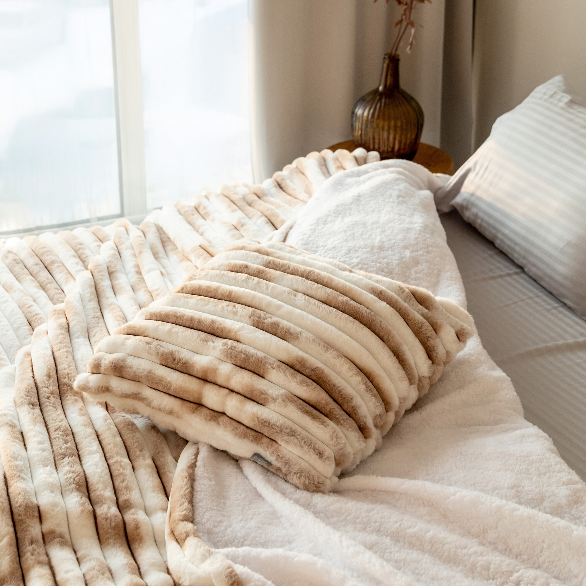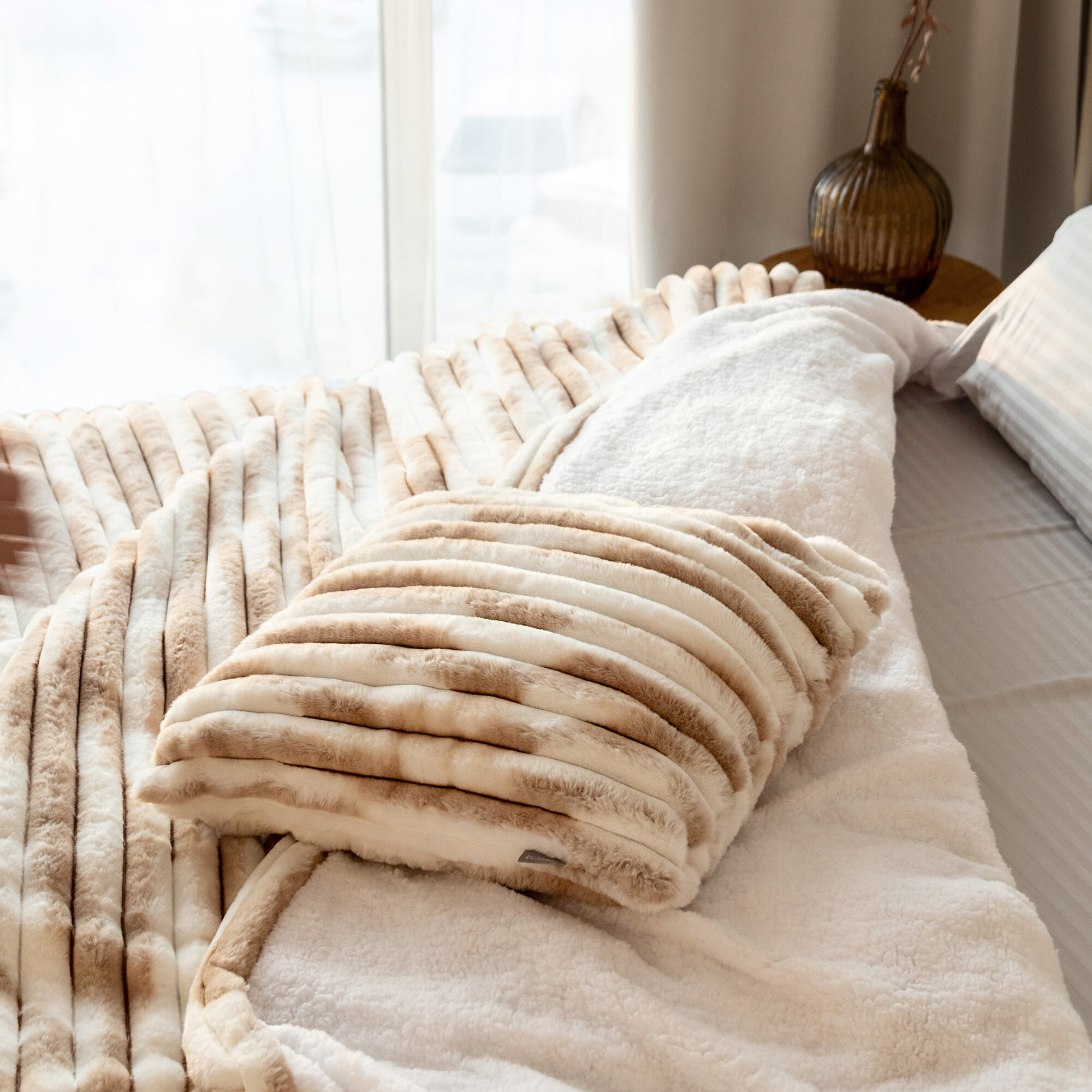 Наволочка декоративная DeNASTIA, "Кролик с шерпой", искусственный мех, 45x45см, цвет коричневый/белый информация: