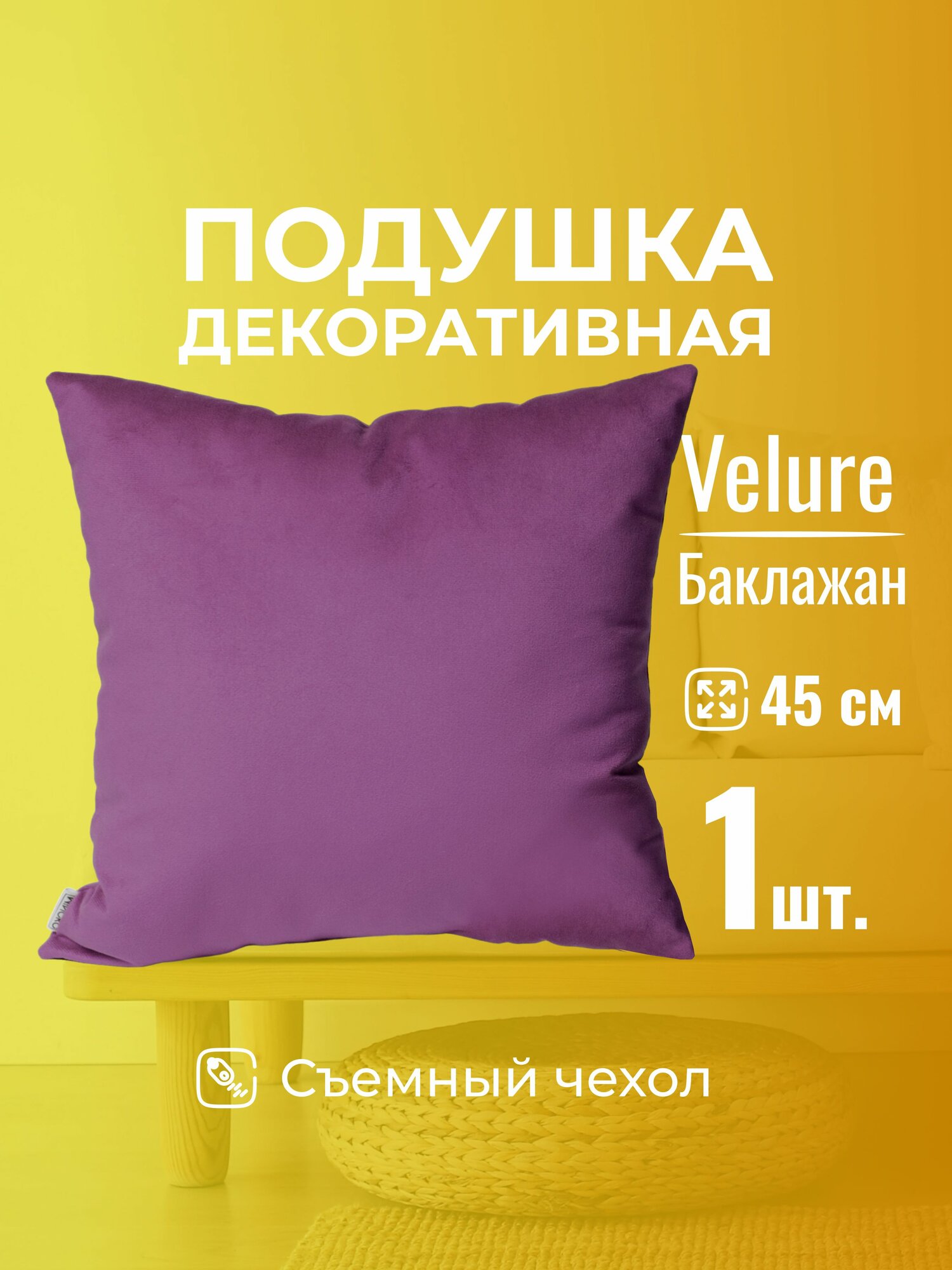 10 цен на Подушка декоративная 45х45 MINOKO Velure Баклажан, с молнией, 1шт