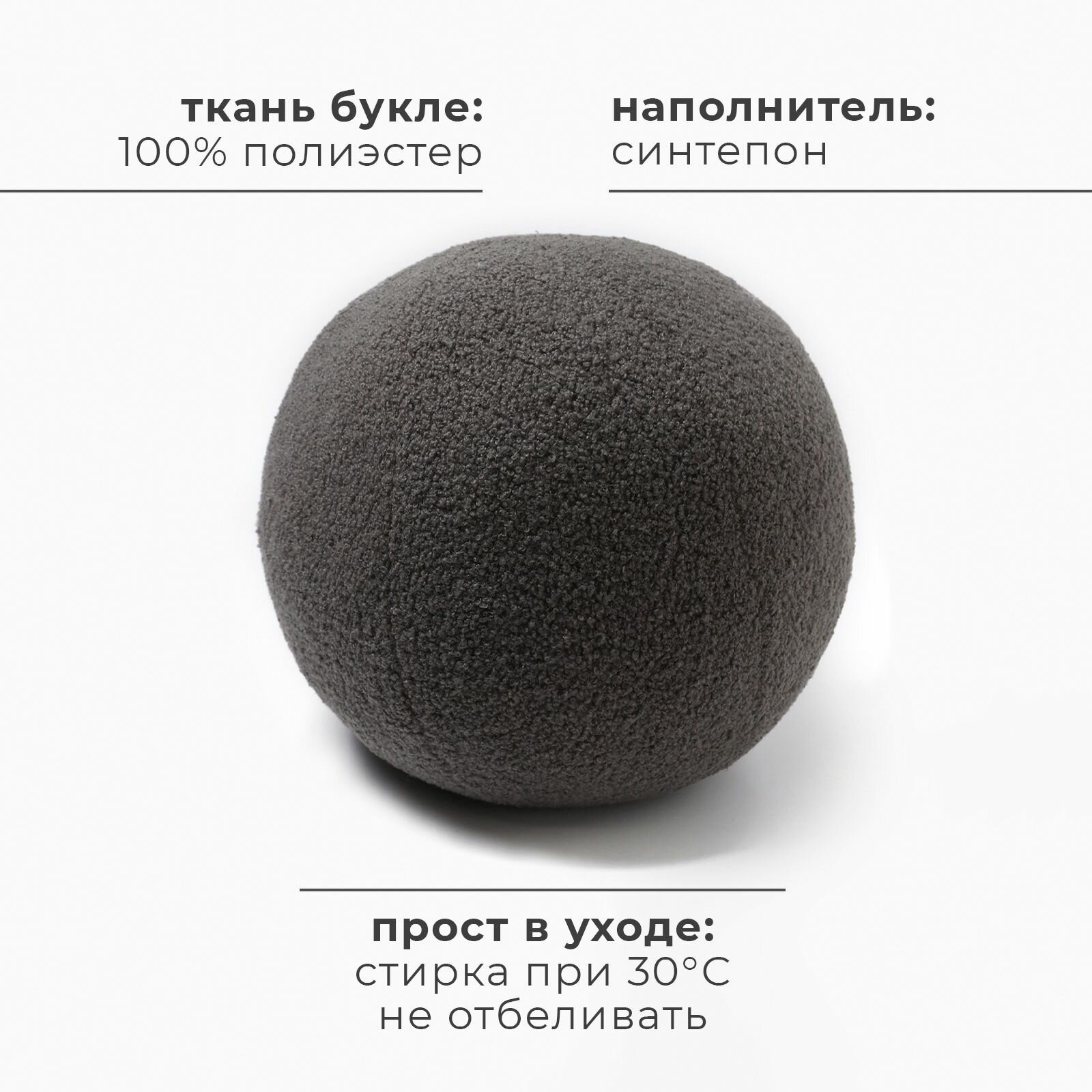 Подушка декоративная Этель "Шар" d=30, цвет: темно-серый, состав: полиэстер 100% 870 ₽